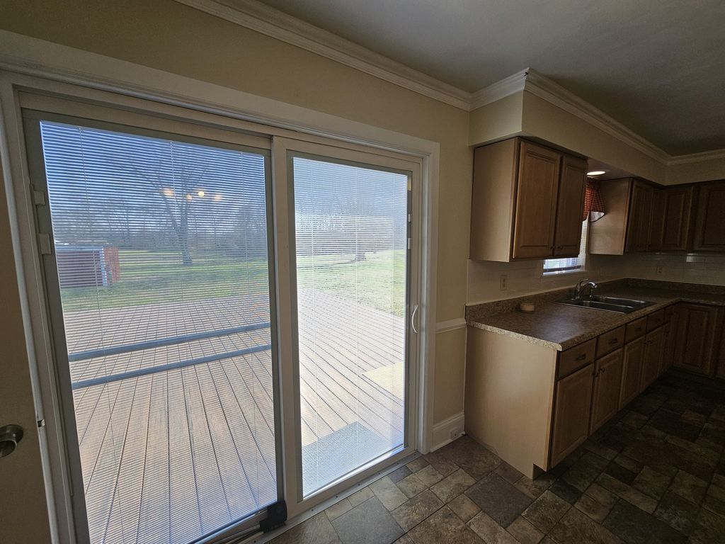 Enjoy peaceful country living right on the edge of town in this charming ranch home set in a lovely rural setting. Situated on a large lot, the backyard features a chain-link fence-perfect for keeping children and pets safe while enjoying the outdoors. This well-maintained home offers a comfortable living room with laminate wood flooring, along with a kitchen and adjoining dining area showcasing updated KraftMaid cabinetry with convenient pull-out drawers and a stylish tile backsplash. The remodeled bathroom provides a bright, spa-like feel, while the bedrooms offer comfort and generous closet space. A large, separate laundry room adds extra convenience. Additional updates include a Trane central air unit, gas furnace, newer patio doors with built-in blinds, water heater (2020), updated electrical box, and an aerator septic system with a new motor. A detached storage building with a lean-to offers excellent space for a workshop, storage, or hobbies. All of this located just minutes from town-giving you the perfect balance of rural charm and everyday convenience.