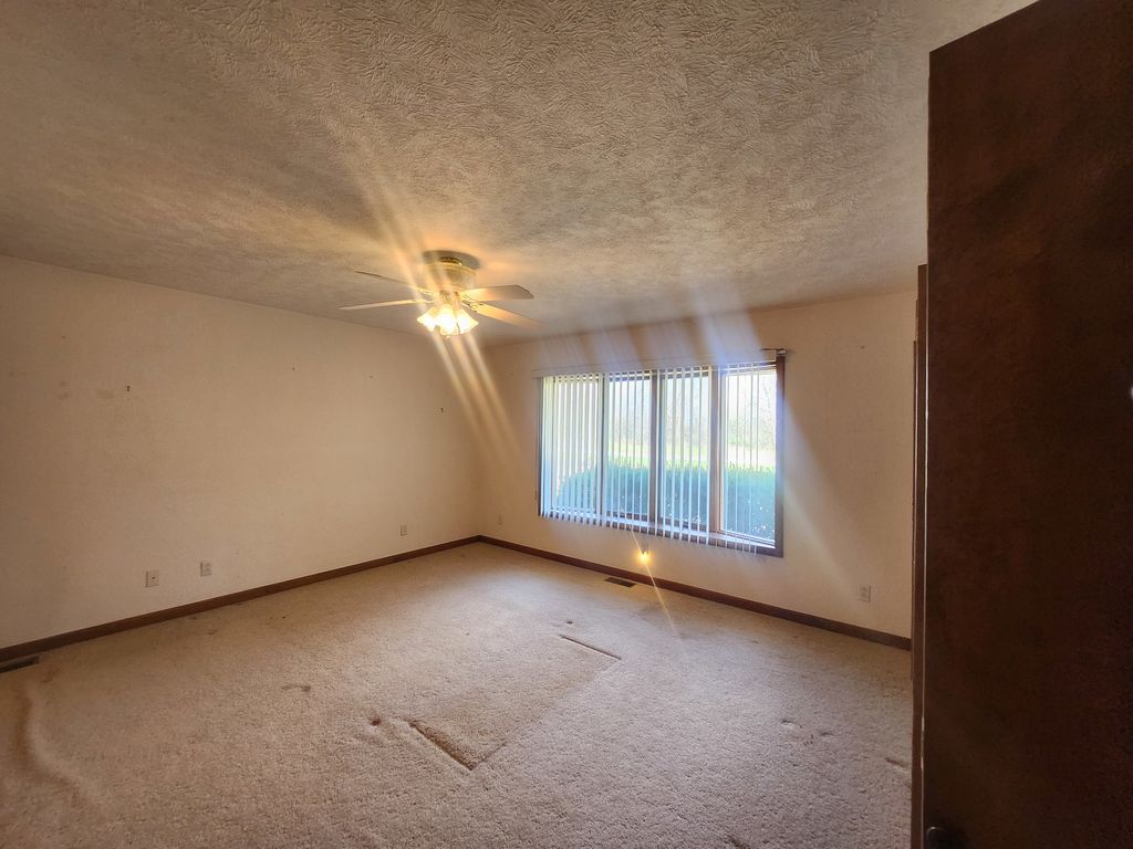 Enjoy the ease of one level living - well maintained home offers the perfect blend of space, comfort and convenience, all sets on a generous 1.6-acre more or less lot. Classic brick exterior complemented by a welcoming layout - spacious entry foyer gives easy access to formal dining and separated living room offering hardwood floors - functional kitchen layout with plenty of workspace and storage, neutral countertops and center island with bar seating - cozy family room offers brick fireplace with wood burning insert and ceramic tile flooring - 2 bedrooms with 3 baths - laundry room -2 car attached garage with plenty of storage space plus detached metal pole building ready for your hobby or additional car storage space -located close to shopping and amenities with quiet country feel