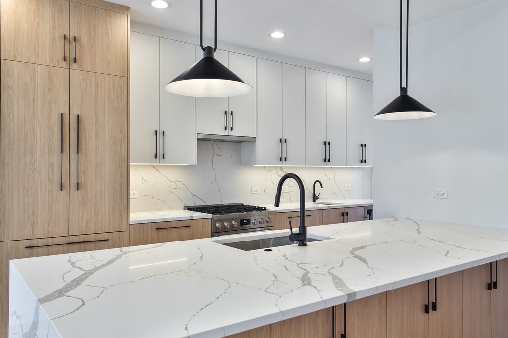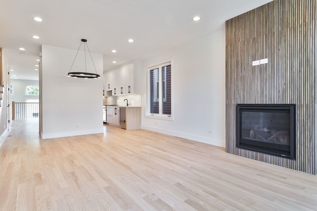 Contemporary 4 bedroom, 3.1 bath new construction single-family home near the Blue line in Mayfair! Spacious floor plan featuring design forward interiors and modern fixtures and finish materials. Sun filled combined living/dining room with direct vent gas fireplace. Entertainer's kitchen with Bosch appliance package, soft close cabinetry, large peninsula with bar seating, butlers pantry with sink and beverage center and separate pantry closet. Adjoining family room with oversized windows allowing tons of natural light and access to the backyard patio. Spacious primary suite with two WIC's with custom organizers, and ensuite bath with dual sinks, frameless glass shower and heated flooring. Two additional bedrooms, hall bath with dual sinks, tub and linen closet, and laundry with washer/dryer and sink complete the upper level. Finished lower level with nice ceiling heights, large rec room with wet bar and beverage center, 4th bedroom, full bath, second laundry hook-up, utilities and storage. Enclosed backyard with patio offers plenty of outdoor space plus a detached two-car garage. Close to restaurants, entertainment, shopping, public transportation, parks, and other conveniences. Exceptional quality home by top developer. Photos are from a recent project with comparable floor plan and finishes. Estimated completion May.