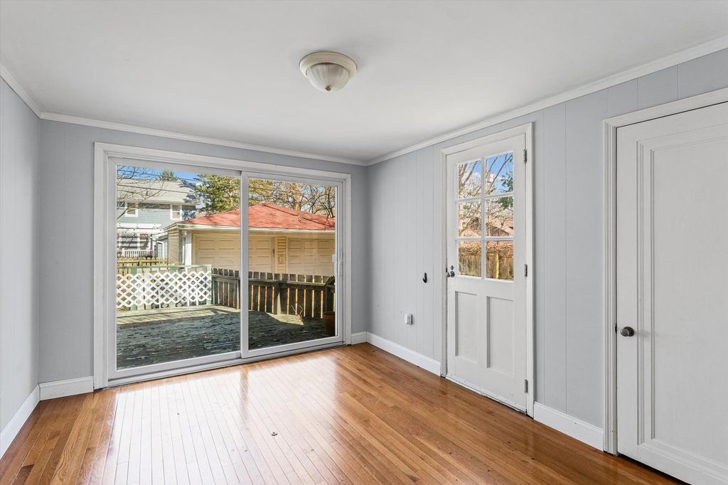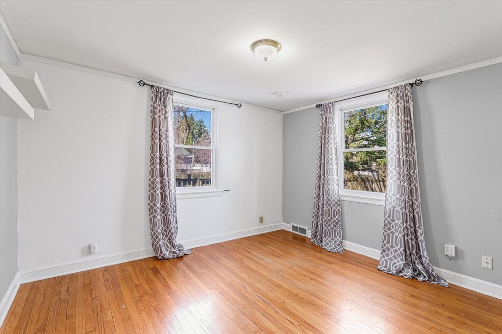 It's easy to fall in love with this two-story home, where elegance meets timeless charm. From the moment you enter, you're greeted by a stunning wood staircase, rich hardwood floors, and beautifully preserved historical features throughout. The spacious living room features a fireplace, crown molding, and high baseboards. Just off the living room, you'll love the versatile at-home office or playroom, filled with abundant natural light streaming through the windows. The kitchen has been tastefully updated with painted cabinets, quartz countertops, a new light fixture, and stainless steel appliances. The home's functionality is enhanced by a convenient main-floor bedroom. Updated double-pane windows enhance efficiency, while the furnace and A/C units were replaced in 2013! Upstairs, you'll find three spacious bedrooms, including an updated primary suite. A carpeted walk-up attic provides additional flexible space. The basement features a fifth bedroom, perfect for use as an art studio or recreational room. Outdoors, enjoy peaceful moments on the back deck overlooking the backyard, with the added benefit of an attached two-car garage. Call today to schedule your tour of this move-in-ready home, conveniently located near campus!
