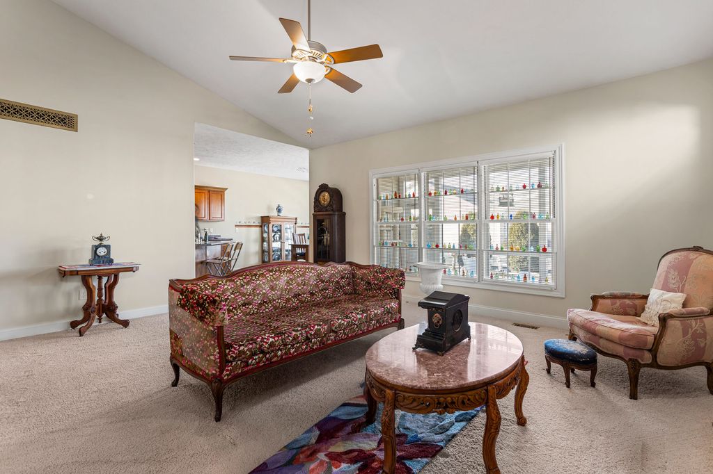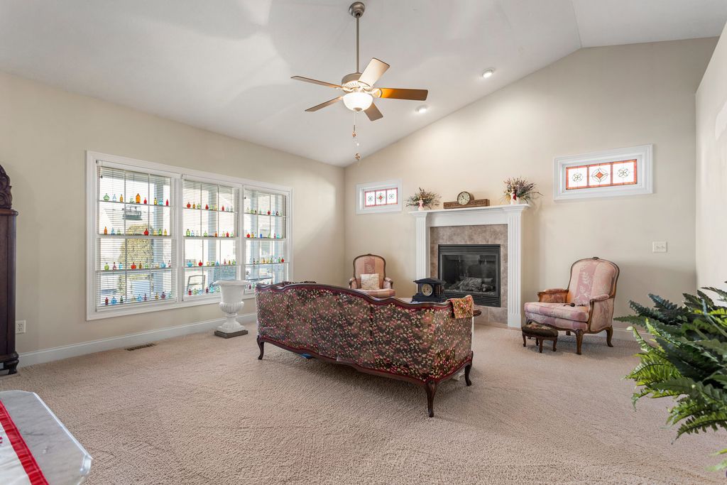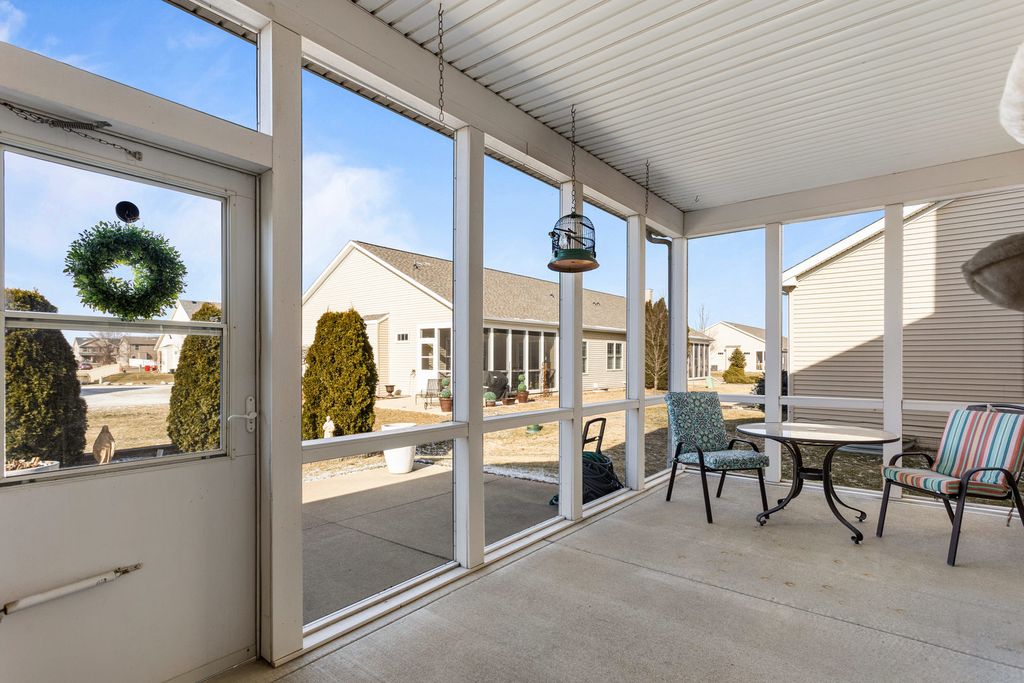 Well maintained 2 bedroom, 2 bathroom condo offering low maintenance living with an open concept layout and thoughtful updates throughout. Spacious living room features a gas fireplace and flows into the eat in kitchen and formal dining area. Large primary suite with ample space and comfort. New vintage lighting and custom stained glass details add character and charm throughout the home. Convenient main level laundry located just off the attached 2 car garage. Full unfinished basement provides excellent storage or opportunity to finish for additional living space. Enjoy the screened in porch and private garden area added by the seller, with a peaceful commons area directly behind the home. Major mechanical updates include roof (2025), AC (2019), furnace (2018), and water heater (2014). HOA covers exterior maintenance. Unit ownership includes everything within the interior walls.