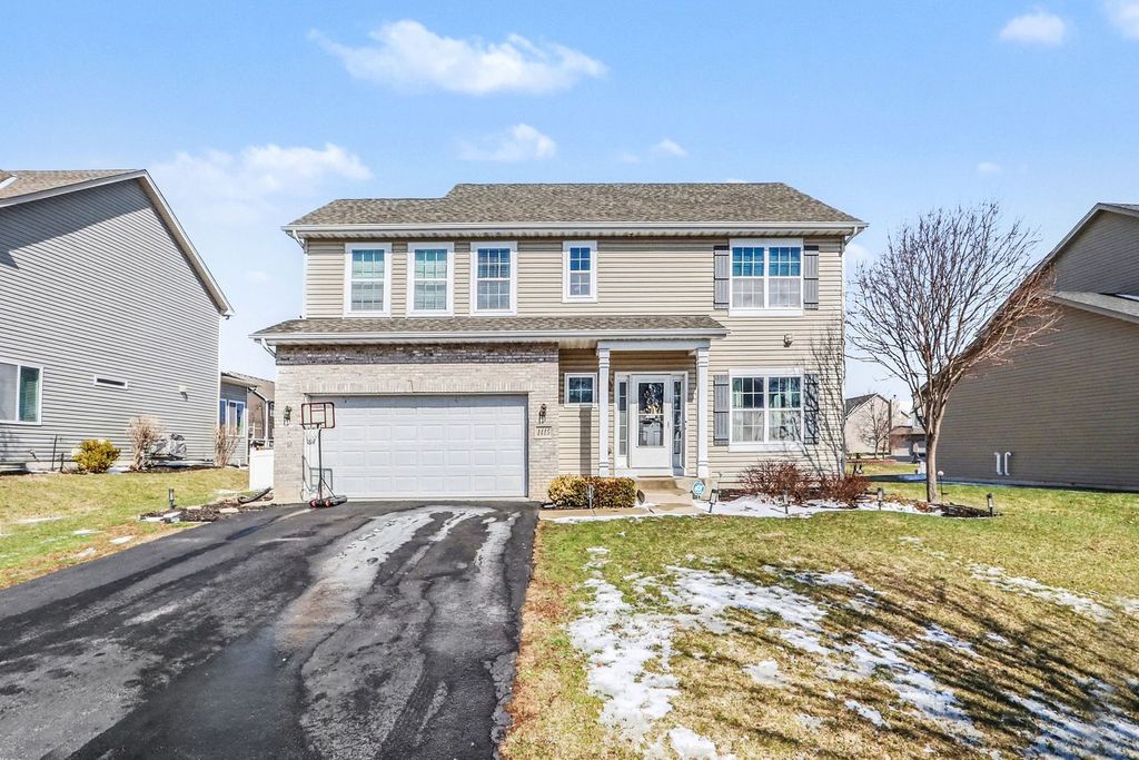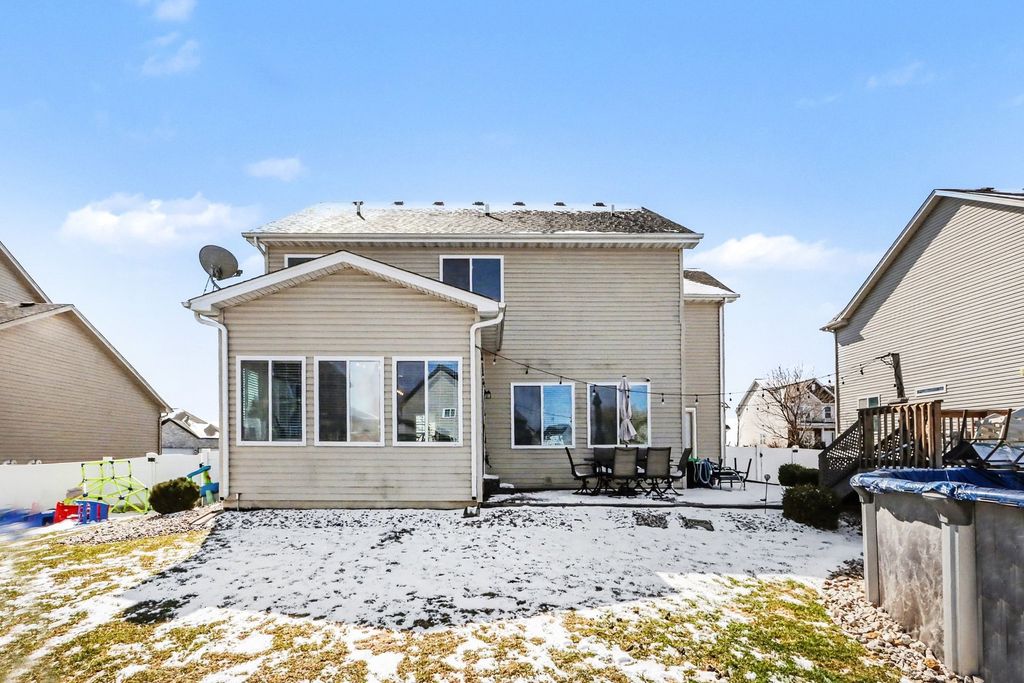 Minooka schools!! Beautifully updated 2-story home in Neustoneshire subdivision offering 4 bedrooms, 2.1 baths and approximately 2,147 sq ft, built in 2015. This home features a spacious open floor plan with newflooring (installed last summer) throughout the entire first floor, along with updated trim and modern finishes. Bright and open kitchen includes a large island, breakfast bar, abundant cabinetry, all stainless steel appliances, and a newer dishwasher (approximately 3 months old). Just off the kitchen is a sun-filled sunroom that adds additional living space and overlooks the backyard, perfect for relaxing or entertaining. Main living areas offer great natural light, updated light fixtures, and a clean, move-in ready feel. Second floor features a spacious primary suite with private bath, double sinks, walk-in closet, and custom barn door detail. Additional bedrooms offer generous sizes, including multiple walk-in closets. Convenient second floor laundry. Full unfinished basement provides endless potential for future finishing or storage. Exterior features include a newer deck and above-ground pool with heater and full pool fence for added safety. Large backyard with stamped concrete patio, perfect for entertaining. Attached 2-car garage. Located on a .20 acre lot in Kendall County with easy access to shopping, dining, and Rt 59.