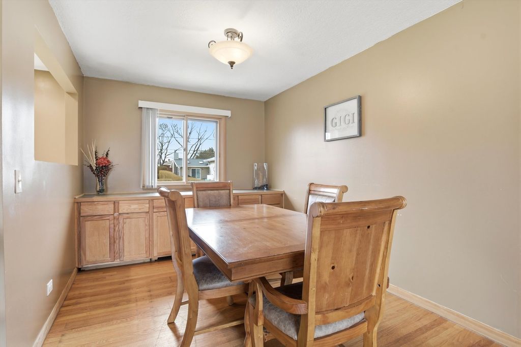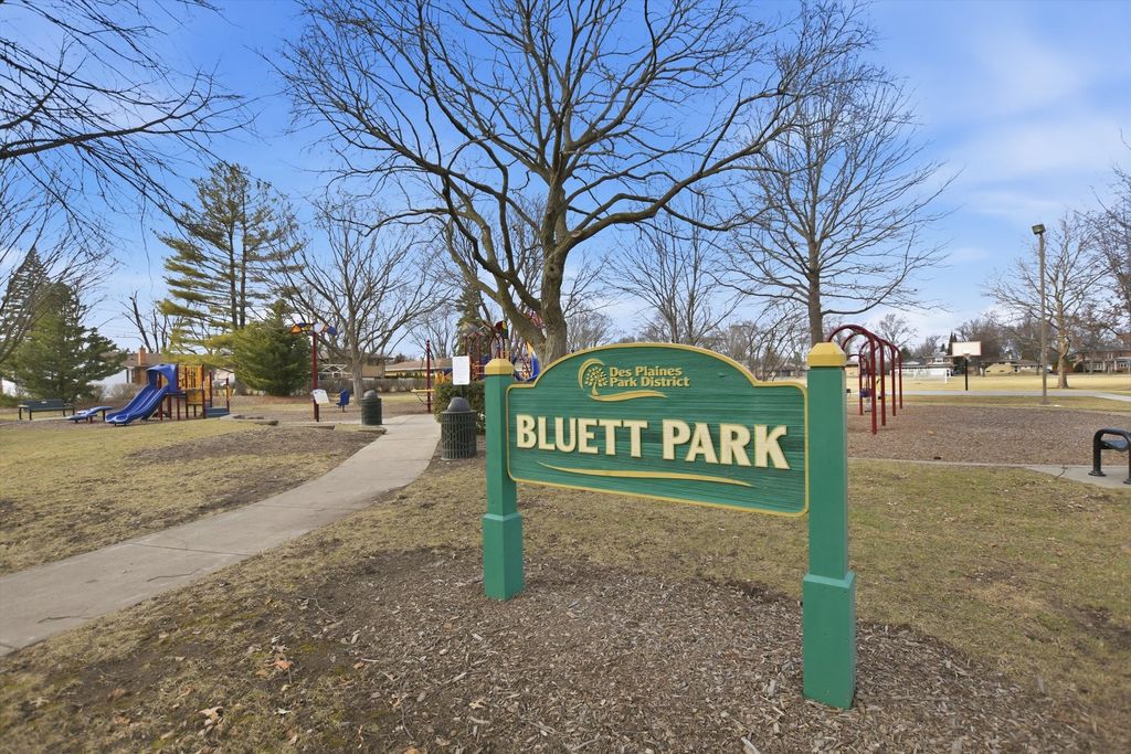 Spacious 4-bedroom, 3-bath home perfectly situated in desirable Mt Prospect's district 26 schools, Hersey High School and steps from Bluett Park and Saint Emily School. Two levels of living space. Main level features open floor plan including living room w/huge bay window and adjoining dining room ideal for hosting large gatherings. Eat-in kitchen w/oak cabinets and Corian countertops. Primary suite w/full bath and balcony overlooking huge fenced-in yard. Hardwood floors and 6-panel doors thru-out main level. Walkout lower-level features large family room perfect for entertaining and 4th bedroom which could be used as an office or workout room. Full bath w/jacuzzi tub. Laundry area and utility room w/ample storage. Newer furnace, a/c and hot water heater. Sump pump w/battery backup recently installed. 2-car attached garage w/extra storage space. Step outside to your private backyard oasis-fully fenced w/large deck and shed. House in move-in ready condition but sold as-is. Enjoy all that Mt Prospect has to offer, including downtown area for dining, shopping or explore nearby forest preserves and trails for outdoor fun.
