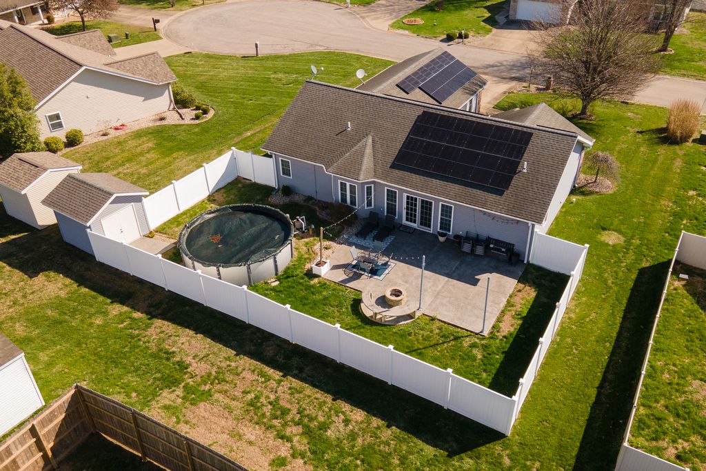 Beautifully maintained home in a highly desirable location! Nestled in a quiet cul-de-sac with no through traffic, this property offers both privacy and peace of mind. Major updates include a new furnace (2024), water heater (2024), whole-house water filtration system, and solar panels installed in June 2024 - helping keep energy costs low. Step inside through the stunning front door to a spacious, open-concept living and dining area featuring an elegant tray ceiling - perfect for both relaxing and entertaining. The kitchen is well equipped with ample cabinetry and a convenient pantry. The generous master suite offers a private retreat with a large bathroom, dual sinks, and a separate shower and soaking tub. An oversized two-car garage provides plenty of additional storage space. Out back, enjoy your own private oasis designed for comfort and fun, complete with a stamped concrete patio, a new above-ground pool (2025), and a large firepit with a built-in concrete bench - ideal for gatherings and cozy evenings. A home warranty is included for added peace of mind.