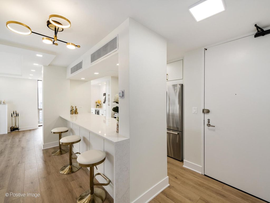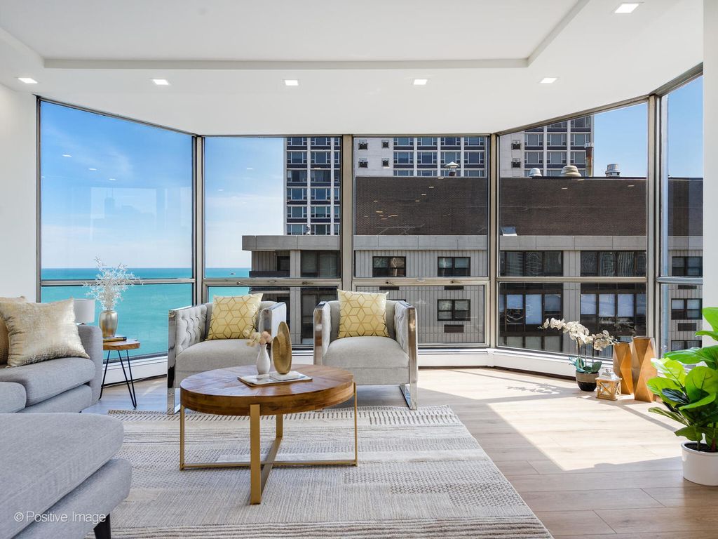 Presenting this stunning brand new gut renovated three bedroom unit in a prestigious location, on a high floor with stunning views, in the landmarked Ritchie Tower building. The newly redesigned floor plan provides a bright open space that has a chef's kitchen that opens to the living & dining areas for entertaining and family gatherings. The three bedrooms are generously sized and there are two luxurious new bathrooms. Be the first to live in this new unit with meticulous craftsmanship, attention to detail and finished to the highest standards. The kitchen has custom off-white slim shaker cabinets with under cabinet led lighting, gold accent hardware & fixtures, quartz countertops and large peninsula with breakfast bar & additional cabinet storage. High-end Bosch appliances - slide-in stove, French door refrigerator, cabinet-panel dishwasher, microwave drawer. The kitchen opens to the dining area with built-in credenza matching the kitchen cabinets, and a wine fridge for convenience. The open living room has floor to ceiling windows that wrap around providing amazing views of the Chicago skyline and Lake Michigan. At the heart of the living space is a rare wood burning fireplace with mantle (fireplaces are only in the top few floors of the building) The primary suite has lake views, it comfortably fits a king size bed, has a professionally organized large walk-in closet, the ensuite bathroom has slim shaker vanity with quartz top, soaking tub, finished with black & gold accent fixtures & hardware, contemporary large format tiled walls and floors. The second & third bedrooms both are also generously sized and have lake views and organized closets. The new guest bathroom has a walk-in shower with sliding glass door, slim shaker vanity with quartz top, finished in gold accent hardware and fixtures. Throughout the unit there are newly built-in recessed lights, wide plank light wood color floors, new electrical & plumbing, abundant professionally organized closets. (in-unit laundry is not allowed to be installed). The A+ location, in the heart of Gold Coast, is a timeless place that's second to none, surrounded by Chicago's most coveted amenities, attractions and architecture - The lakefront, beaches, parks, Michigan Avenue, Oak St, world class dining & entertainment are all at your doorstep. Ritchie Tower (1310 Ritchie) is a highly desired, full amenity, full service building, with 24 hour door staff, onsite management and maintenance/engineer. Amenities include an outdoor pool with sundeck, fitness room. The building has an attached parking garage. Additional large full height storage cage provided. Pets allowed. Healthy reserves with no upcoming big projects or special assessments. Low HOA fees for this three bedroom unit include heat, A/C, cable TV & internet and all building amenities, everything except electricty. This is truly a rare opportunity for an impressive new unit in a superb building with an amazing location.