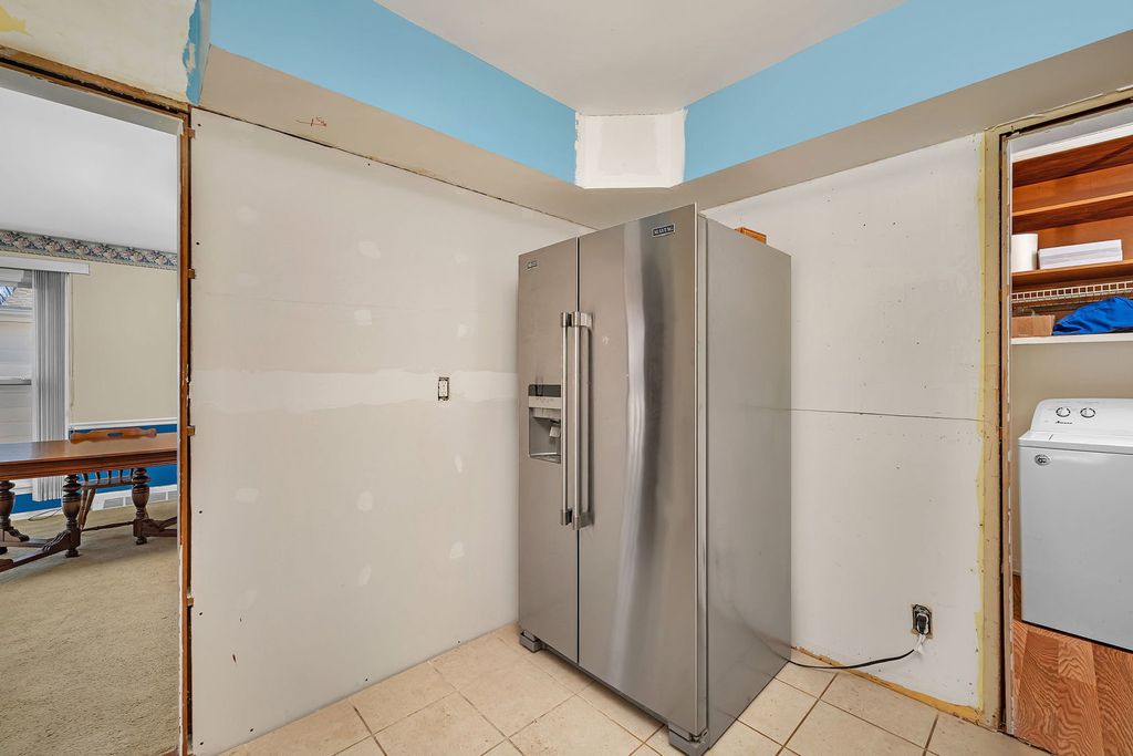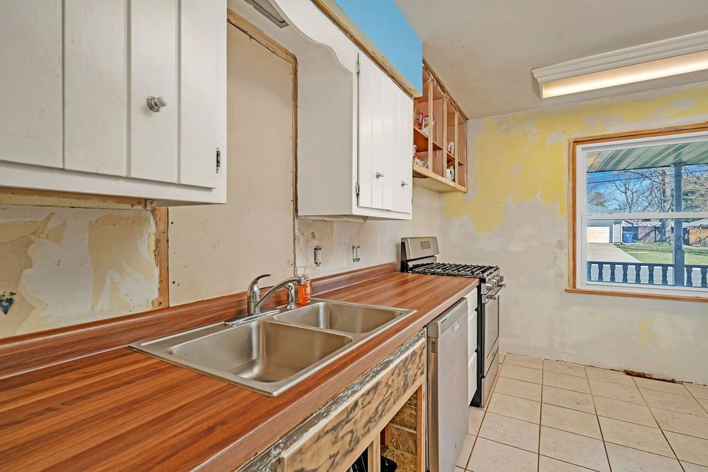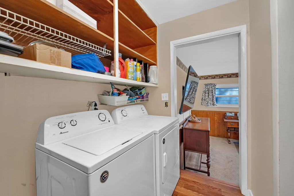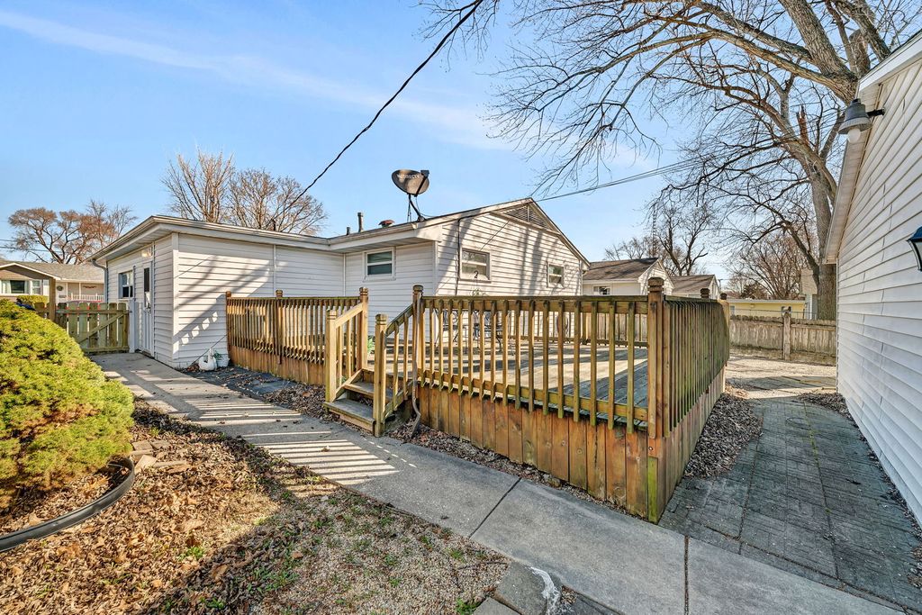 Charming 3 bedroom, 2 bath ranch with great potential! A covered 24ft front porch creates a welcoming first impression and the perfect place to relax or entertain. Inside, the bright living room is filled with natural light from large front windows and offers flexible space for both living and dining. This home features all vinyl windows throughout and original hardwood floors under the carpet, ready to be uncovered and restored. The primary bedroom includes an additional area ideal for a dressing room or expanded closet, along with a private shower bath. Ample storage can be found throughout the home. Step outside to a huge rear deck, perfect for gatherings, grilling, or enjoying the outdoors, with a partially fenced yard. The oversized 2.5-car detached garage (25x23) is heated and offers alley access-ideal for hobbyists or additional workshop. Major updates include siding (2014), deck (2014), furnace (2009), A/C (2004), water heater (2021), and all appliances including refrigerator, stove, dishwasher, washer, and dryer (2019). This home offers solid bones and a fantastic layout, with an opportunity to update the kitchen and make it your own. Great value for buyers looking to build equity!