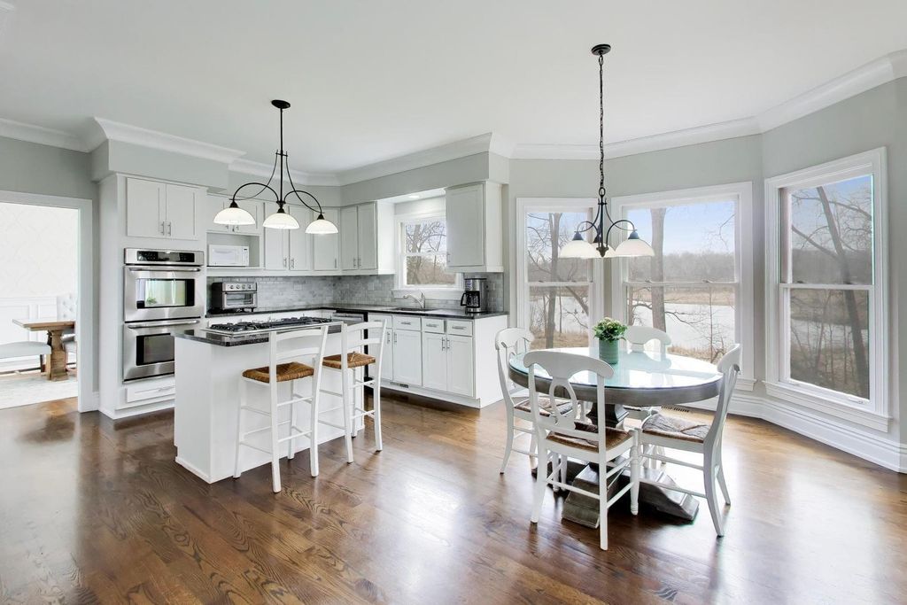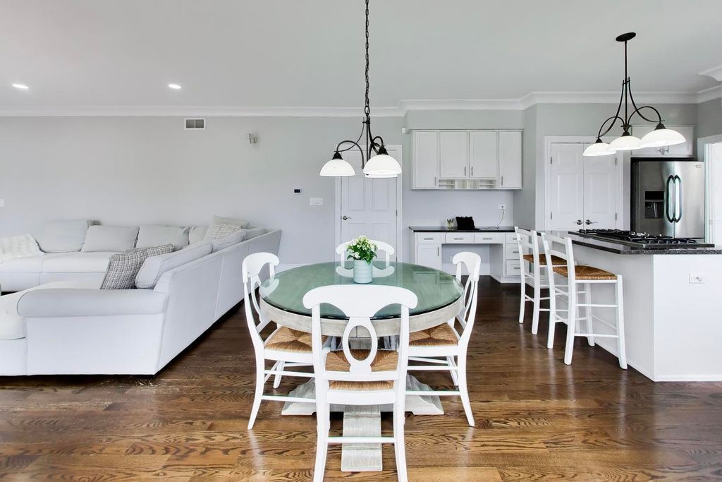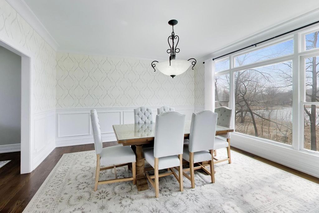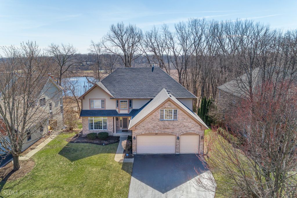 OPPORTUNITY KNOCKS - PREMIER LOCATION with PANORAMIC WATER/CONSERVANCY VIEWS! Elevate your lifestyle in this exquisitely appointed, TURN-KEY LUXURY, five-bedroom, four-bathroom home (two full, two powder) with a fully finished walkout basement, showcasing stunning southern-facing conservancy views with sparkling water vistas and mature trees. Perfectly positioned on a private cul-de-sac street, this sun-drenched residence offers a rare blend of privacy, sophistication, and move-in-ready perfection, complete with a fenced yard, fire pit, and brick paver patio for effortless outdoor living. A grand foyer welcomes you with a widened hardwood staircase, setting the tone for the elegant interiors beyond. The main level features gleaming hardwood floors, stately crown molding & white trim throughout. Formal living and dining rooms flow seamlessly into a gourmet kitchen with white cabinetry, granite countertops, stainless steel appliances, a spacious island w/cooktop, and a classic subway tile backsplash. The sun-filled family room with surround sound creates the perfect gathering space, while a private office and spacious laundry room with washer, dryer, and utility sink add everyday convenience. Updated lighting with dimmers enhances the home's refined ambiance. Upstairs, all five bedrooms are thoughtfully designed for comfort and privacy. The luxurious primary suite features a sitting room, spa-inspired bath with his-and-her vanities + walk-in-closet w/custom shelving. 3 of the 5 bedrooms offer breathtaking conservancy views, including one with a charming built-in bench, while another provides access to an unfinished attic with endless potential. The hall bath is a standout; featuring a separate shower and bathtub with soothing air jets + dual vanity. The finished walkout basement is designed for both relaxation and entertaining, offering a bonus room w/endless usage possibilities, bar area w/custom features incl: American Heritage bar, humidor, wine racks & built in television - all included w/sale of property. Step outside to the brick paver patio with fenced yard and fire pit where serene views and natural beauty create a true outdoor retreat. Additional highlights include: a three-car garage, new roof and gutters (2025), HVAC (2016), and hot water heater (2020). With GORGEOUS views, elegant finishes, and thoughtfully designed living spaces, this exceptional home offers refined, turnkey living at its finest-and is sure to impress.
