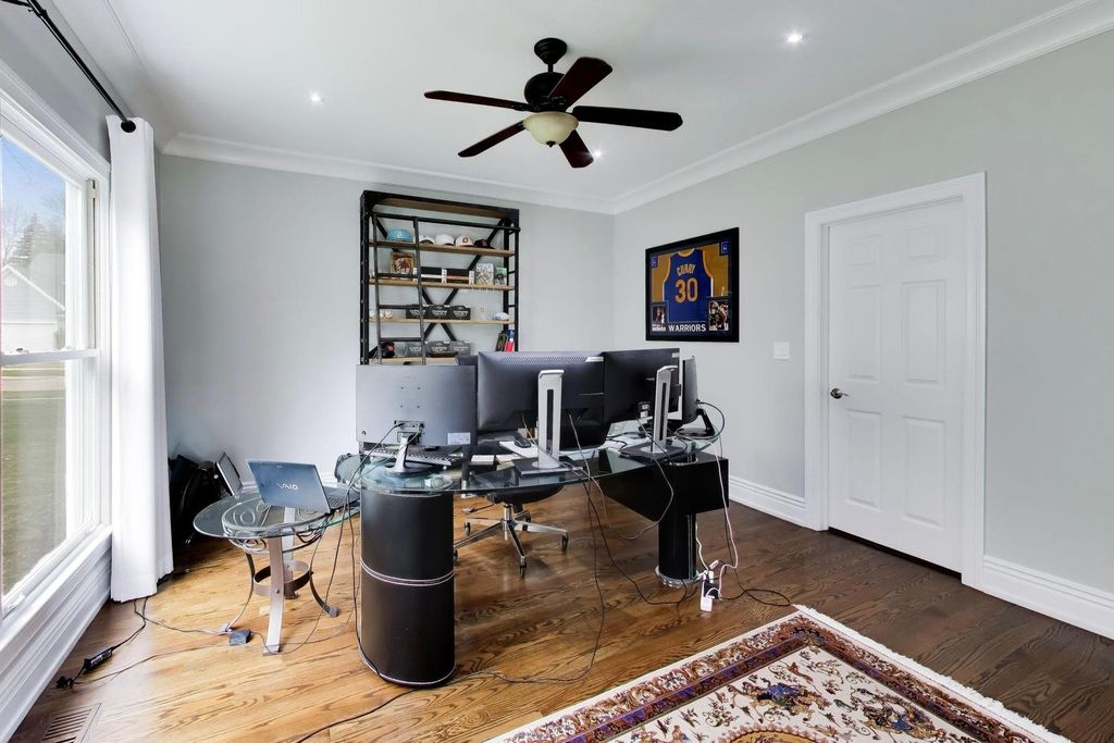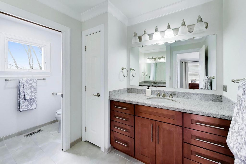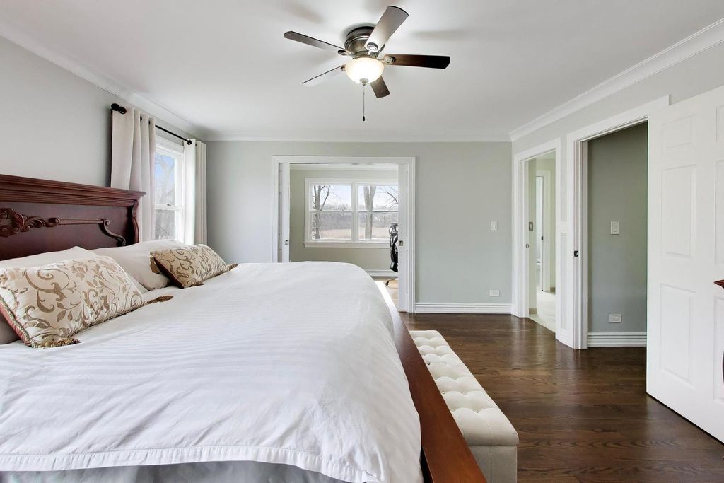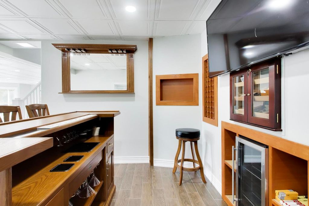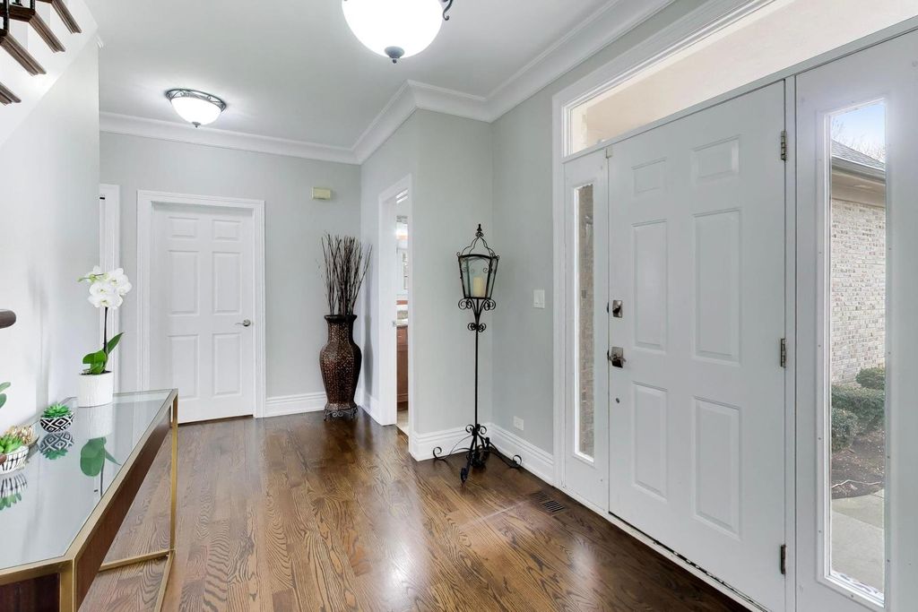 OPPORTUNITY KNOCKS - PREMIER LOCATION with PANORAMIC WATER/CONSERVANCY VIEWS! Elevate your lifestyle in this exquisitely appointed, TURN-KEY LUXURY, five-bedroom, four-bathroom home (two full, two powder) with a fully finished walkout basement, showcasing stunning southern-facing conservancy views with sparkling water vistas and mature trees. Perfectly positioned on a private cul-de-sac street, this sun-drenched residence offers a rare blend of privacy, sophistication, and move-in-ready perfection, complete with a fenced yard, fire pit, and brick paver patio for effortless outdoor living. A grand foyer welcomes you with a widened hardwood staircase, setting the tone for the elegant interiors beyond. The main level features gleaming hardwood floors, stately crown molding & white trim throughout. Formal living and dining rooms flow seamlessly into a gourmet kitchen with white cabinetry, granite countertops, stainless steel appliances, a spacious island w/cooktop, and a classic subway tile backsplash. The sun-filled family room with surround sound creates the perfect gathering space, while a private office and spacious laundry room with washer, dryer, and utility sink add everyday convenience. Updated lighting with dimmers enhances the home's refined ambiance. Upstairs, all five bedrooms are thoughtfully designed for comfort and privacy. The luxurious primary suite features a sitting room, spa-inspired bath with his-and-her vanities + walk-in-closet w/custom shelving. 3 of the 5 bedrooms offer breathtaking conservancy views, including one with a charming built-in bench, while another provides access to an unfinished attic with endless potential. The hall bath is a standout; featuring a separate shower and bathtub with soothing air jets + dual vanity. The finished walkout basement is designed for both relaxation and entertaining, offering a bonus room w/endless usage possibilities, bar area w/custom features incl: American Heritage bar, humidor, wine racks & built in television - all included w/sale of property. Step outside to the brick paver patio with fenced yard and fire pit where serene views and natural beauty create a true outdoor retreat. Additional highlights include: a three-car garage, new roof and gutters (2025), HVAC (2016), and hot water heater (2020). With GORGEOUS views, elegant finishes, and thoughtfully designed living spaces, this exceptional home offers refined, turnkey living at its finest-and is sure to impress.