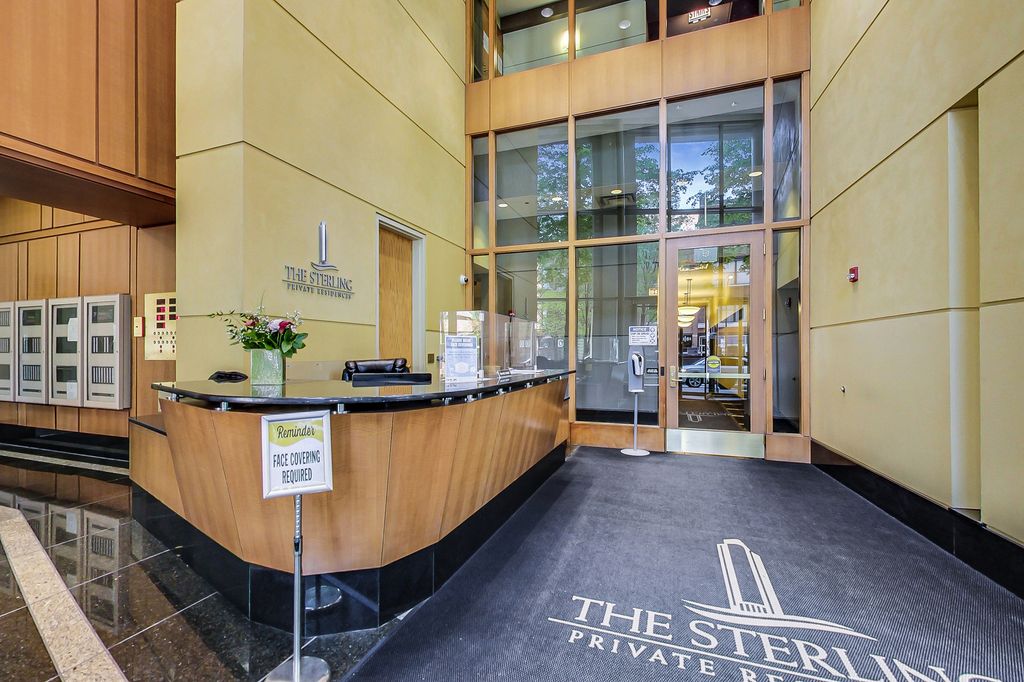 Move in ready 2 bed/2 bath with preferred split bedroom floor plan at The Sterling! Bright & sunny unit with large picture windows showing off a northwest city view! Open kitchen featuring granite countertops, stainless steel appliances and plenty of cabinet space! Fully updated bathrooms, flooring throughout and in unit washer/dryer! Enjoy a full amenity building with a 24 hour doorman, fitness center, outdoor pool, tennis court, BBQs, sundeck, cleaners and on site management! Live in a central location that is walkable to restaurants, bars, shopping, transportation and so much more! Attached parking garage with spots for lease.