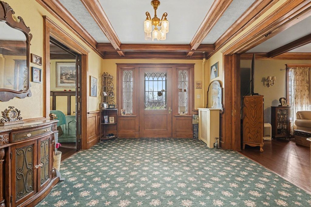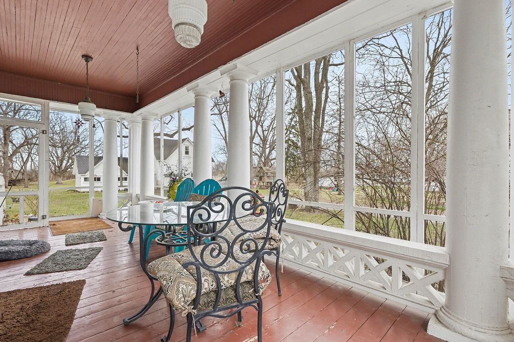 Absolutely Beautiful! This Fabulous-Southern Architecture style 5-Bedroom, 3-Bathroom Mansion-Estate situated on almost 3-Acres is incredible! The Two-Three Story Home which has over 4,000 sq. Ft. of living space, was a former Illinois State Senators Home and has a Coach house, mini-coach house and filled with impeccable Quality, millwork and Detail thru out! From the moment you drive-up, the impressive Home is flanked at the entrance with Four-Corinthian Columns topped with a second floor Veranda and a Large-front complimentary deck-porch! A Formal Entryway with leaded Glass Doors w/sidelights, opens into an inviting-Large Grand-Foyer with a an eye-catching Grand style sweeping Staircase along with a wood-beamed ceiling and beautiful detailed millwork-woodwork that looks like it was just completed yesterday. The adjoining Living-Great Room, also with a beamed ceiling, has a 7-8 Ft. wide Brick Fireplace with flanking windows, dark-rich looking, original Hardwood Floors, light sconces and thick private-pocket doors. On the other side of the Foyer is French doors leading to a grand Formal Dining Room, also with a stunning wood-beamed ceiling, hardwood Floors and a wonderful glass, built in corner display credenza and a built China Cabinet. From the the Dining room is access to a wonderful screened-in Florida Room with columns, perfect for those nice Spring and Summer mornings to have Breakfast, Lunch or having an evening drink watching the Moon come up. The Kitchen, with has access from the Dining room or from a common hall, has an entire wall of built-in Pantry shelves and cupboards. There is a center Island and multiple Cherry wood cabinets along with a Stainless steel, refrigerator, stove, Dishwasher and wine cooler and has access to the outside. There is a First-Floor Bedroom that could also be a First-Floor Master Bedroom, Guest Bedroom or Mother/Father-in Law's Bedroom with an adjacent Full Bathroom next to it. From the Grand Foyer, the Staircase leads to Four additional Bedrooms, a 2nd Floor Bathroom a Sitting Room and a 3rd Staircase leading to a Finished 3rd Floor. The Large Master Bedroom, as with all the Bedrooms, has Hardwood floors and has a spacious 2nd Bedroom with a vanity sink and a connecting door that could also be a Baby or Child's room. The 2nd floor Bathroom has a walk-in shower. A front Sitting room overlooks the 2nd floor Balcony Veranda above the entrance and there is a 2nd Staircase with a private door leading down to near the kitchen and rear service area. A 3rd staircase goes up to a large 3rd-floor finished room with window dormers that could be an Office or Theatre-Family Room. There is a door leading to a tall attic room also with additional window dormers that could be finished in to an additional approx.1000 Sq .Ft. of living space. From the Grand Foyer there is access to a hall that goes to the Kitchen and rear service door and to the English Basement which has solid Concrete-exterior walls and has four additional rooms along with a 3rd Full Bathroom and Laundry Room, great for finishing. The rear service door goes outside to a 2-Car Garage Coach House that has future potential to have living space room above and also a Heated and air conditioned mini-coach style House that has a workshop in there now that could be a variety of other possibilities. There is approx. 2.74 Acres. A Brand New Architectural Roof is scheduled to be installed in April. Ceiling Fans in some rooms and insulated window coverings. The Grand Foyer, 2nd floor center-Hall and 2nd floor Sitting Room more than likely have Hardwood Floors. Property would easily cost well over $1,000,000. to build and duplicate this Outstanding Estate Home!