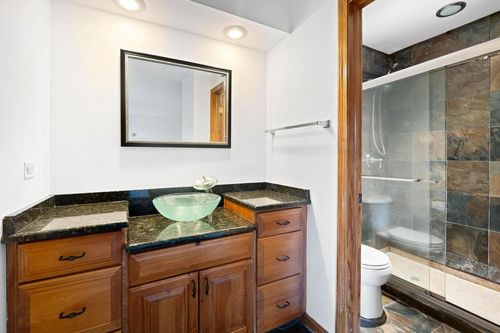 Bright & Airy End-Unit 2BR/2BA Condo with Stunning Pond Views! Beautiful 4th-floor end unit with abundant natural light and breathtaking pond views. Updated galley kitchen with granite countertops, stainless steel appliances, and vented exhaust. Spacious living room with newer laminate flooring and sliding door to private balcony. Both bedrooms feature sunny southern exposure; primary suite includes dressing area and updated vanity. Newer furnace & AC (2018). Includes 1 garage space (#141). Enjoy top amenities: secured entry, heated garage, bike room, laundry facilities, pool, tennis courts, ponds & walking trails. Located in highly rated Prospect High School district and close to Metra, shopping, dining & expressways!