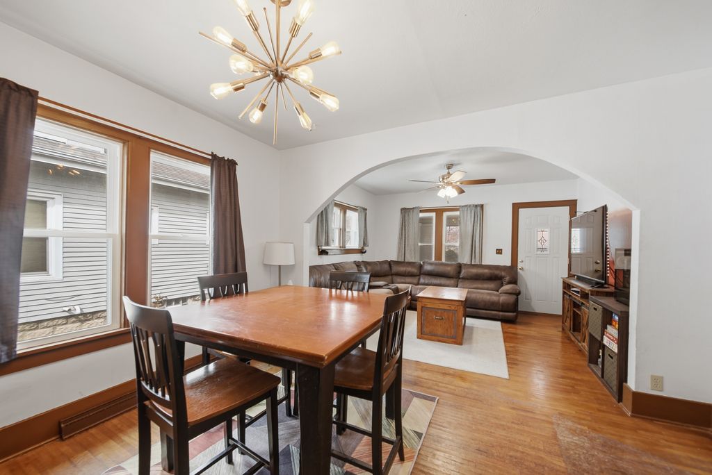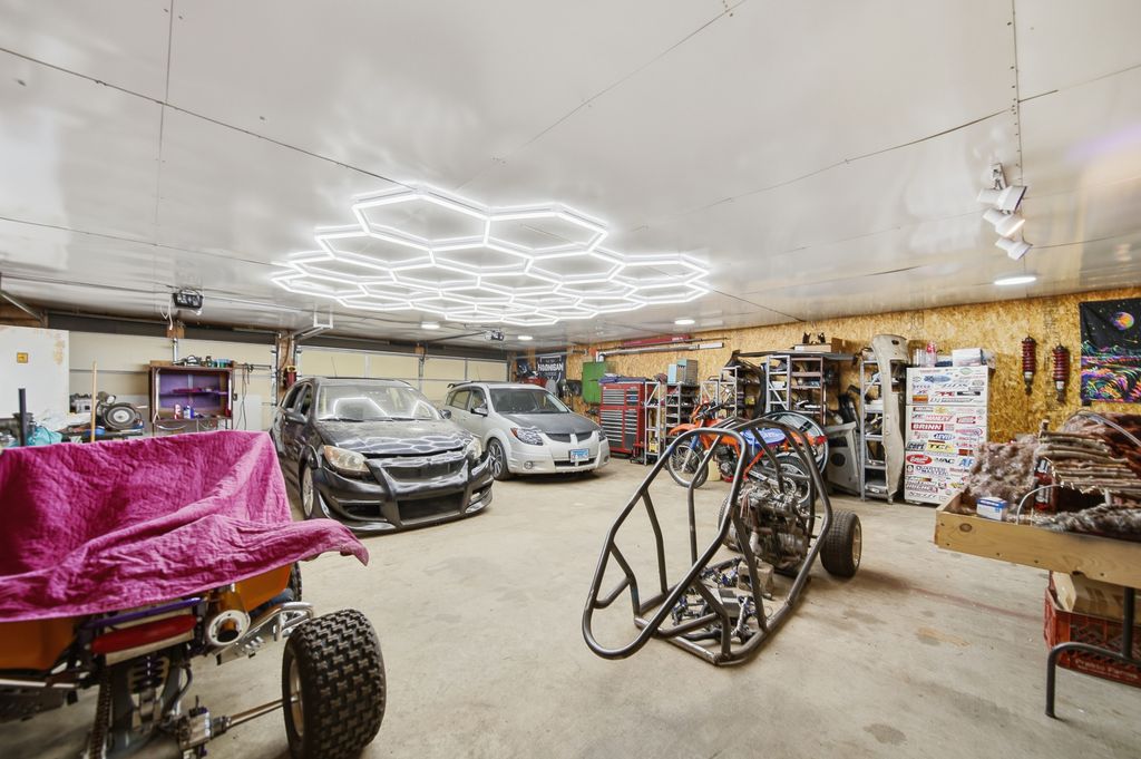 Hard to find setup for hobbyists and car enthusiasts! This charming 2-Bedroom home features an incredible 6-car heated garage - perfect for projects, storage, or a dream workshop. Enjoy an enclosed front porch and a screened-in back porch with potential to finish for added living space. Inside offers a cozy layout, while the clean basement includes an additional room ideal for a hobby space, office, or more storage.