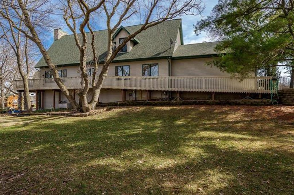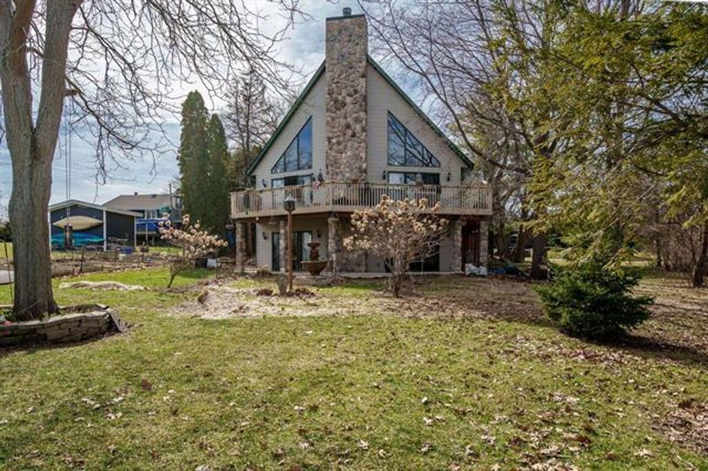 Tucked within the gated Candlewick community in Poplar Grove, where lake days, golf mornings, and sunset cruises become your everyday rhythm is this stunning waterfront home with breathtaking views of the lake - 1700 Candlewick Dr. SW- this one-owner custom home features 3 bedrooms, 3 full baths, 1 half bath, and a 3.5-car attached garage, offering over 3,200 square feet of beautifully designed living space. Showcasing exceptional lake views and a cozy, cabin-luxe ambiance, this residence is perfectly suited for refined year-round living or an unforgettable summer escape. Step inside to a warm and inviting entryway that opens effortlessly into the heart of the home, where the kitchen and dining spaces unfold with intention and ease. The showstopping family room is nothing short of breathtaking, anchored by a soaring 25-foot stone masonry fireplace with elegant marble accents. Towering windows and sliding glass doors frame panoramic lake views and extend living outdoors onto an expansive wraparound deck-creating a seamless indoor-outdoor experience designed for both quiet mornings and memorable gatherings. The kitchen is beautifully appointed with rich cherry cabernet cabinetry, dark granite countertops, and a spacious center island, all flowing effortlessly into the open-concept living and dining areas. Radiant heated floors run throughout the main level (excluding the family room), which has been thoughtfully designed for full handicap accessibility. A private ensuite bedroom with walk-in closet, a well-designed laundry room, and a stylish powder room complete the main level with both comfort and functionality. Upstairs, a lofted sitting area overlooks the family room and captures stunning lake views, leading to the serene primary ensuite featuring a walk-in shower and generous closet space. The walk-out lower level delivers the ultimate recreation space with a wet bar, cozy fireplace, third bedroom, and full bath-perfect for hosting guests or creating your own lakeside retreat. An expansive unfinished storage area offers incredible potential for a fourth bedroom or additional living space while still maintaining ample storage. Step outside and embrace the Candlewick lifestyle-featuring a private lake, golf course, rec center, fitness center, park, tennis courts, and pool-all just moments from your door. From relaxing on your deck to walking down to your private dock and setting out on the water, every day feels like a vacation. An exceptional waterfront lifestyle-this is more than a home, it's an experience.