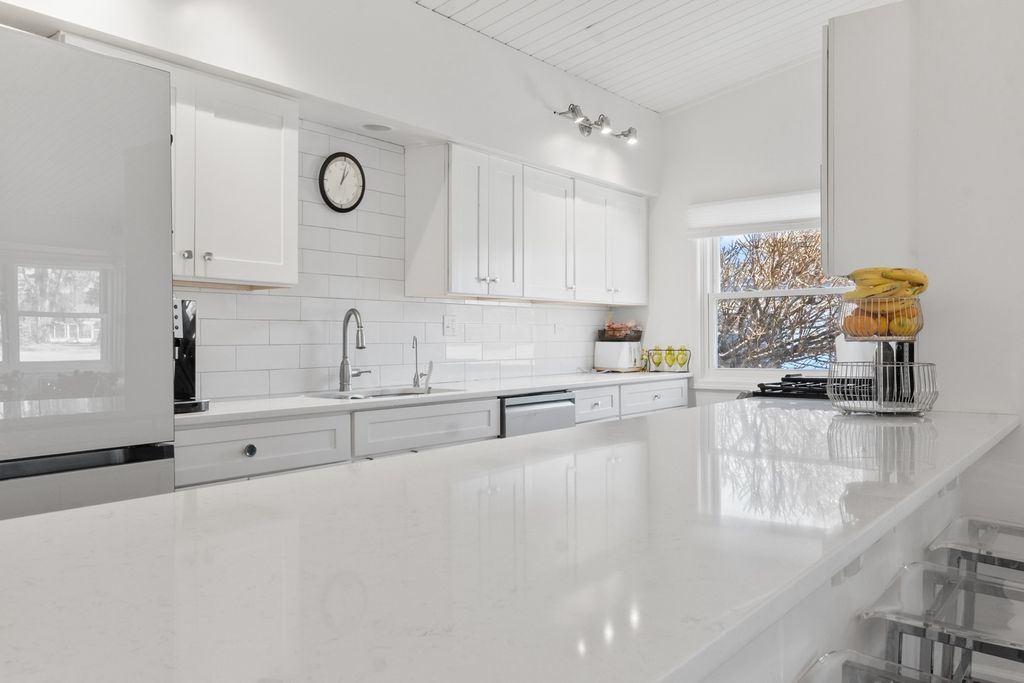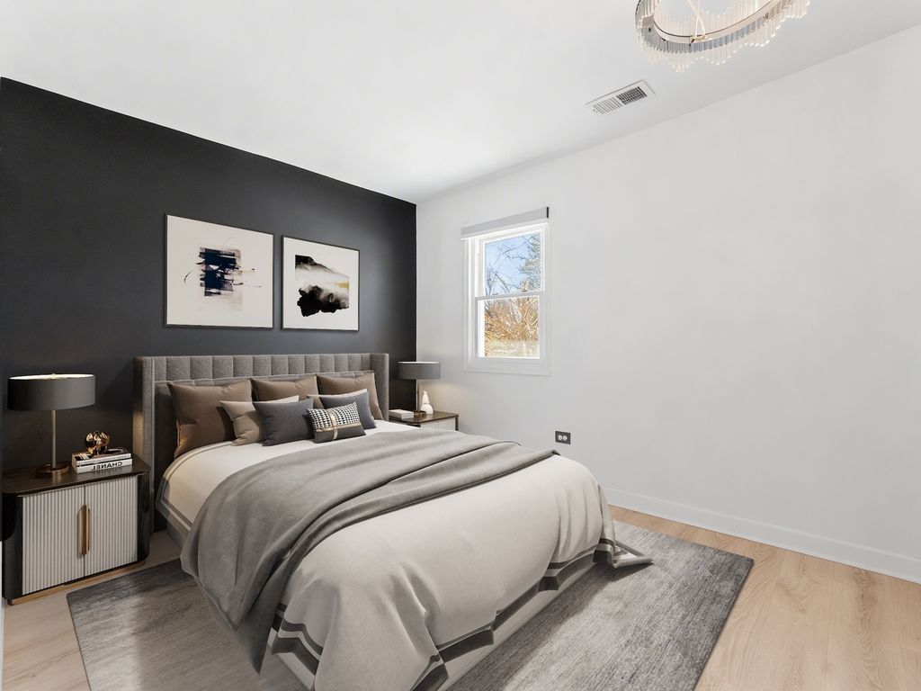 ** PROSPECT SCHOOL DISTRICT** Walking distance to the Metra/the vibrance of all Downtown Mount Prospect has to offer (award winning restaurants, parks, recently built library and much more). Discover the ease of single-level living in this beautifully remodeled ranch, set on a private half-acre lot at the end of a quiet cul-de-sac. Fully renovated in 2023, this four-bedroom, two-and-a-half-bath home blends fresh modern finishes with the tranquility of a wooded, natural setting. A newly finished driveway, updated exterior lighting, full exterior painting, and a 2023 roof create an inviting first impression. Inside, vaulted ceilings and an open, versatile floor plan offer effortless flow throughout the home. A gracious living and dining area welcomes you with warm hardwood floors, serene views of the yard, and a newly replaced fireplace that anchors the room. The kitchen sits at the heart of the home and was refreshed with new millwork, abundant counter space, a very large island, with 2024 appliances and ample cabinetry. The adjoining dining room opens directly to the expansive patio, ideal for entertaining, dining al fresco, or enjoying quiet mornings overlooking the large backyard and wooded surroundings. A first-floor laundry and mudroom, complete with a new washer installed in 2025, add everyday convenience. The private primary suite is thoughtfully separated from the additional bedrooms and features newly updated flooring, a custom closet build-in, and a remodeled bath with new cabinetry, lighting, and fixtures. Three additional bedrooms offer space for family, guests, or a dedicated office. All bathrooms were refreshed in 2023 with new cabinets etc and the entire home was fully repainted to create a cohesive, modern feel. Additional updates include 2018 windows, furnace, and AC; a 2024 water heater; and updated interior millwork and doors throughout. This home offers exceptional flexibility, privacy, and turnkey comfort-perfect for year-round enjoyment in a peaceful natural setting, yet close to everything you need.