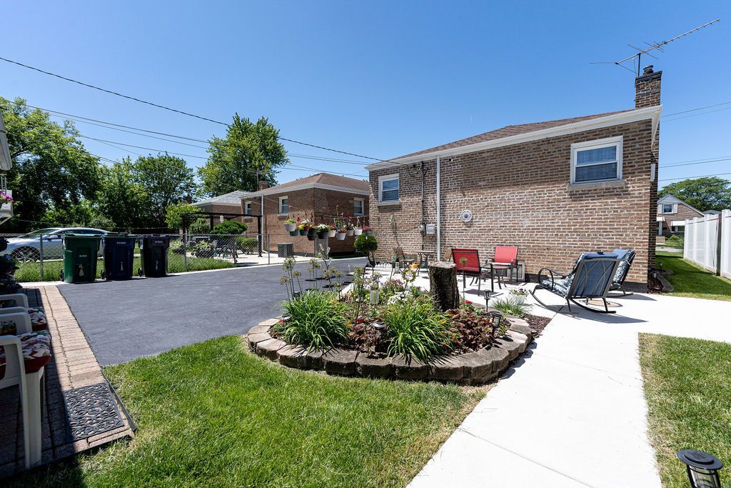 Fresh Opportunity with Major Upgrade - Brand New Air Conditioning Installed! Welcome home to this beautifully maintained all-brick 4-bedroom, 2-bath residence offering standout curb appeal and extensive updates throughout. The exterior has been thoughtfully enhanced with newer awnings, roof shingles, gutters, window trim, a NEW concrete patio and walkway, freshly sealed driveway, and two new storm doors. The home has also been professionally tuckpointed and features a fully fenced backyard filled with lush perennials and stunning landscape lighting creating a glowing garden retreat in the evenings. Inside, you'll find fresh paint, elegant crown molding and chair rail detail, and gleaming hardwood floors throughout. The updated kitchen is both stylish and functional, featuring granite countertops, a glass tile backsplash, double-bowl sink, and stainless steel appliances - all included, along with the washer and dryer. Both bathrooms have been beautifully remodeled. The full finished basement offers incredible flexibility with a 4th bedroom, a private office (easily a 5th bedroom), a cozy fireplace, and a spacious laundry room with a built-in ironing station. Additional major improvements include a newer crown boiler, two sump pumps, and now brand new central air conditioning, providing year-round comfort. The oversized 2.5-car finished garage is an added feature perfect for entertaining or hobbies with a sitting area, updated electrical, multiple outlets, and its own A/C unit. This home truly checks every box with quality updates, versatile living space, and exceptional indoor/outdoor appeal. Move-in ready and better than ever - schedule your showing today!