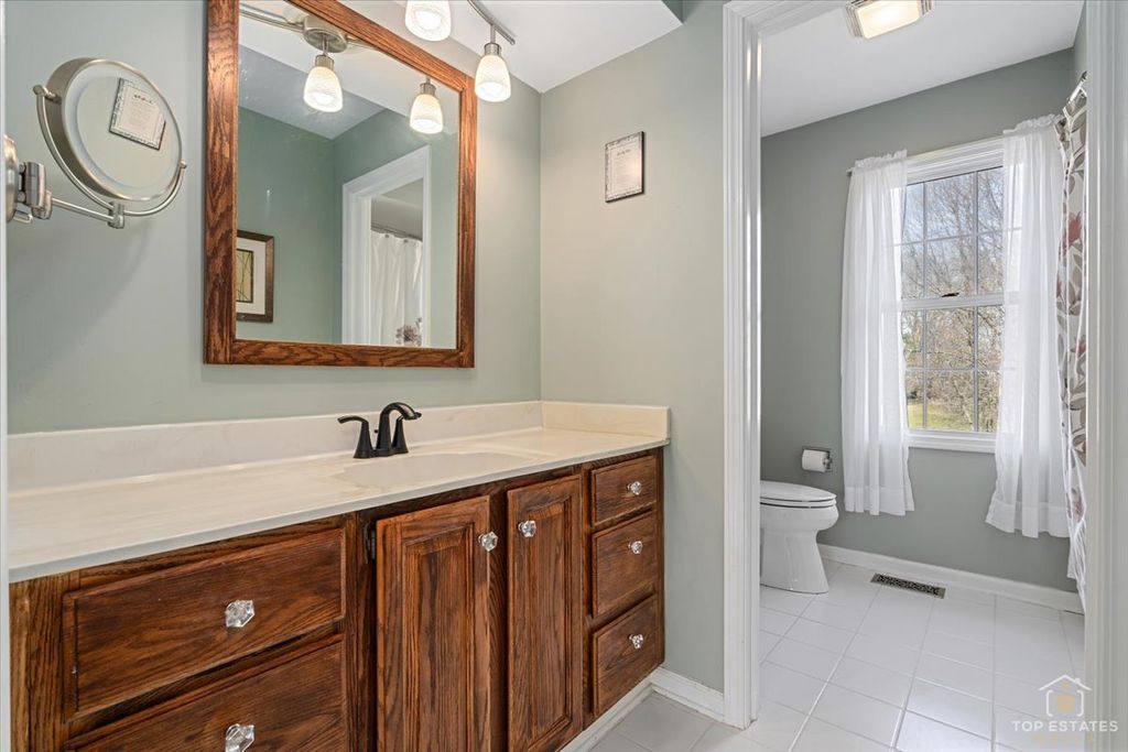 Picture perfect and completely move-in ready, this beautifully maintained 4-bedroom, 2.1-bath home in the highly desirable Walnut Hill subdivision of St. Charles offers a stunning, very private setting and a spacious, light-filled layout designed for both everyday living and entertaining. The inviting two-story foyer opens to a bright living room and a flowing main level featuring gleaming cherry hardwood floors. The formal dining room connects seamlessly to the kitchen and family room, creating a warm and functional gathering space. The kitchen features rich cherry cabinetry, quartz countertops, a glass-tiled backsplash, stainless steel appliances, and a center island overlooking the breakfast area, with sliding glass doors leading to the private backyard. The adjoining family room offers a cozy gas fireplace, while the first-floor laundry room with a utility sink adds everyday convenience. Upstairs, you'll find three generously sized secondary bedrooms with ample closet space, along with a spacious primary suite that feels like a private retreat, complete with a jetted tub, separate shower, dual vanities, and a walk-in closet. The full finished basement provides excellent additional living and recreation space. Step outside to enjoy the fenced backyard with a brick paver patio and storage shed, offering great space for outdoor entertaining, play, and extra storage-all while enjoying a high level of privacy. Recent updates include the new furnace and A/C with heat pump for improved efficiency, reverse osmosis and soft water system, siding, gutters, and updated bathrooms! Ideally located just minutes from both Downtown St. Charles and Downtown Geneva, recreation, shopping, and dining opportunities are endless. Walk to parks, tennis courts, the St. Charles East Side Sports Complex, and more, this home combines space, comfort, and convenience in a fantastic location!