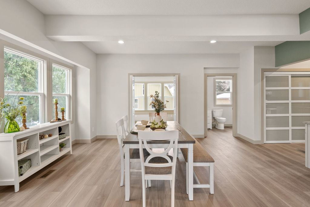 Loaded with modern updates, and beautiful charm, this completely renovated 2+ story home is priced to sell and ready for its new owners. The main level and upper level have been fully gutted and updated, blending the character of a classic older home with modern finishes throughout. Step inside to a beautiful open foyer where the living room impresses with oversized windows - including Pella windows - flooding the space with natural light. The informal dining room features a cozy 4-season room just off the back door, perfect for year-round enjoyment. A half bath and main level laundry room are conveniently located off the back door as well. The kitchen offers abundant cabinet storage and a charming coffee nook, all finished with luxury vinyl plank flooring that runs throughout the entire main level. All the appliances are stainless steel and brand new. The kitchen sink is stainless steel as well and quartz countertops throughout. Upstairs, you'll find 4 bedrooms and a fully reconstructed full bath. The third floor offers over 700 sq ft of flexible space - ideal as a 5th bedroom, home office, or recreation room. Don't forget the full basement that could be finished for additional space and has a half bath. Outside, the fully fenced backyard includes a deck off the back of the house. The oversized 2-car insulated detached garage features an overhead loft for additional storage. There is plenty of parking by the garage as well for up to 4 cars! Furnace 2025, AC 2025, Water heater 2025, roof house 2010, garage 2020, house exterior repainted 2020, new electrical and electrical (grounded) panel 2025, retaining wall 2020, 6 panel doors, the framing has been reinforced and reframed according to a structural engineer, privacy fence portion 2025, ceiling fans throughout, exterior of garage painted in 2025, hard wired fire alarms. Schedule your showing today!