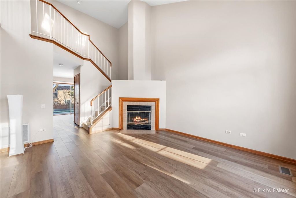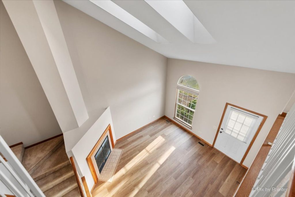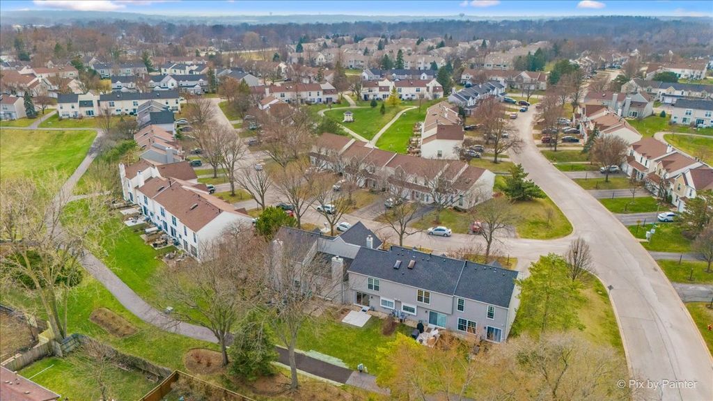 Welcome to this stunning, newly updated townhome in the highly desirable Tiffany Place! Located just blocks from the forest preserve, this bright 1,129 square foot home backs directly to walking trails that wind throughout the community. You will be wow'd by the open two-story floor plan, featuring fresh paint throughout (2026), all-new luxury vinyl plank flooring on the first floor, and new carpeting (2026) throughout the second floor and stairway. The dramatic two-story, vaulted living room features a corner gas fireplace and 2 skylights, with a new palladium window flooding the space with natural light. The large kitchen offers a breakfast bar and pantry, equipped with newer stainless-steel appliances, and opens to a dining area with sliding glass doors leading to a brand-new cement patio. The primary suite is a true retreat with vaulted ceilings, two closets, a new ceiling fan (2026), and a full bath featuring a newer tub/shower surround and skylight. A flexible loft area with a closet and ceiling fan overlooks the living area, perfect for a 2nd bedroom (easily convertible to add a wall & door), home office, or guest space. Additional perks include a first-floor laundry/mudroom off the one-car attached garage, and a powder room with newer fixtures. Unbeatable location minutes from the I-90 tollway, shopping, and dining!