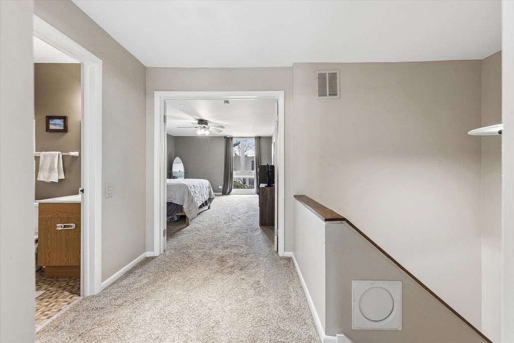 Love Where You Live! | This spacious end unit townhome is move-in ready and perfect for you! Enjoy a completely updated, stunning kitchen featuring stainless steel appliances, an open concept layout with an island, quartz countertops, a cozy breakfast nook, and generous storage, including a coat and pantry closet. The main level also boasts an updated half bath and a separate dining space that overlooks the inviting family room with a fireplace. Step outside the sliding glass doors to your private deck, ideal for entertaining. The full, partially finished basement adds even more entertaining/office area and a separate laundry room offering ample storage. On the second level, you'll find three spacious bedrooms and a full bath. The main bedroom features its own ensuite and a walk-in closet. Plus, all new windows on the second level enhance the home's appeal. Enjoy convenient access to the clubhouse, pool, and fitness facility. Parking is just steps away in a covered space. Located so close to everything! | LOVE Elmhurst!