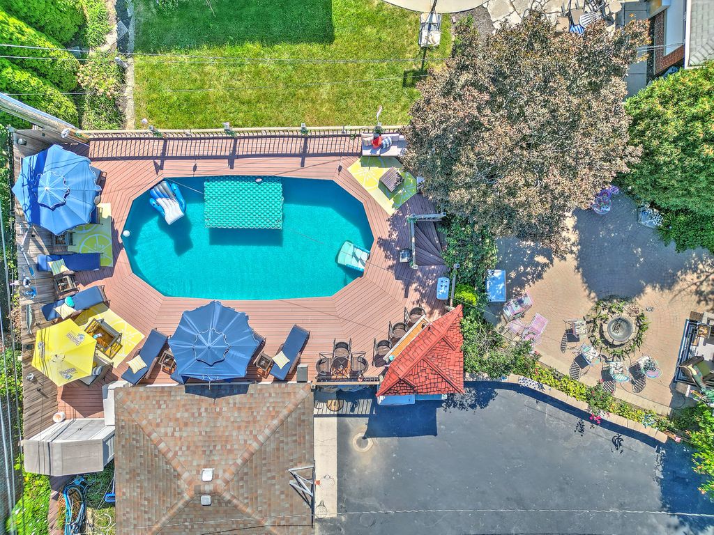 A Rare Beverly Gem!!! Built in 1911 by the president of Sears Roebuck, this extraordinary 4-bedroom, 3-bath, 3,469 sq. ft. estate sits on an oversized 60' x 191' lot and has been meticulously restored to its original beauty with modern updates. Previously featured on the Beverly Home Tour and Garden Walk, the home blends historic craftsmanship with contemporary elegance. Constructed with triple-wythe brick walls and steel structural supports, the home was built with the finest Sears Roebuck materials of the time. Inside, you'll find mission-style oak staircases, high ceilings, elegant fluted moldings, ornate radiators, and stained-glass windows. Vintage details like a built-in phone booth, antique mission-style furnishings, and crown moldings showcase the home's character. The west-facing living room features a wood-burning fireplace framed by stained glass. A sunroom with mission-style windows and a gas fireplace invites natural light and evening sunsets. The chef's kitchen offers a granite island, double convection ovens, French door refrigerator, tall bi-tone cabinetry, and opens to a formal dining room accented by a copper ceiling and original built-in buffet. Three bedrooms include a primary suite with bay window, whirlpool bath, custom vanity, and a private glass-wrapped office. The spa-like hall bath features a steam shower with four showerheads. Cedar-lined closets provide storage throughout. Recently renovated, the third floor offers a bright entertainment space with skylights, a bedroom, storage, and a spa-like bath with a stone shower floor, marble vanity, and makeup counter. The basement provides abundant storage, laundry with dual washer/dryers, tool room, pantry, and workspace. The backyard is a true retreat. A 1,200 sq. ft. brick patio includes a stone grill, vintage pergola with Bluetooth sound, koi pond, waterfall, and fire pit. Beyond a trellis, enjoy a 15' x 30' pool with custom composite deck, tiki bar, and ample lounge space. A two-car garage completes the property. Beverly is known for its architectural charm, cultural events, and community spirit. Enjoy nearby dining, breweries, shopping, art, and the South Side Irish Parade. Convenient access to Metra and CTA make commuting easy while preserving a small-town feel in the city. This once-in-a-generation Beverly estate offers historic beauty, modern amenities, and a resort-style backyard oasis. Schedule your showing today.
