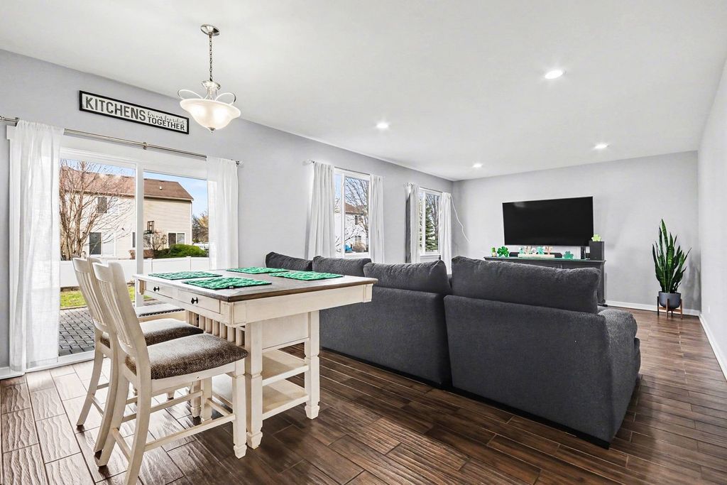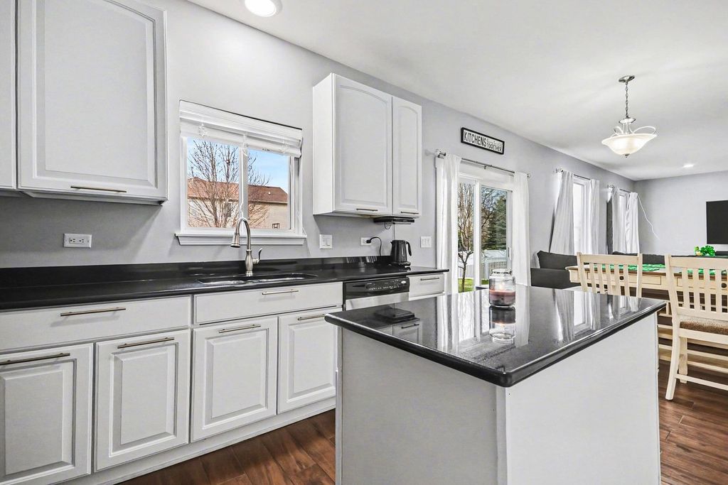 Turnkey 5 bedroom home with a fully finished basement, major interior and exterior upgrades, and over 3,000 sq ft of finished living space. Renovated from 2022-2025 and truly move in ready. 2022: Fully finished basement featuring a wet bar, full bathroom, flex room ideal for office or 5th bedroom, large recreation area, and utility room. Main level updates: New porcelain tile flooring, updated doors and trim, refreshed staircase, fresh paint, and open, functional living and dining spaces. 2023 exterior upgrades: New siding, roof, gutters, and trim for long term durability and refreshed curb appeal. 2025 upgrades: New refrigerator, Washer, Water Heater, New Sliding Patio Door, and a completely redesigned spa style primary bath with walk in shower and soaking tub. Four spacious upstairs bedrooms include walk in closets, plus the convenience of second floor laundry. The backyard offers a large paver patio and expansive yard, ideal for entertaining or everyday use. Located in the Liberty Grove subdivision, this home is served by Plainfield School District 202 and is surrounded by neighborhood parks, walking paths, and green space. Residents enjoy close proximity to Lake Renwick Preserve, the DuPage River Trail system, shopping, dining, and convenient access to major commuter routes Rare turnkey condition with flexible space. Schedule your tour today and Move in with Confidence!