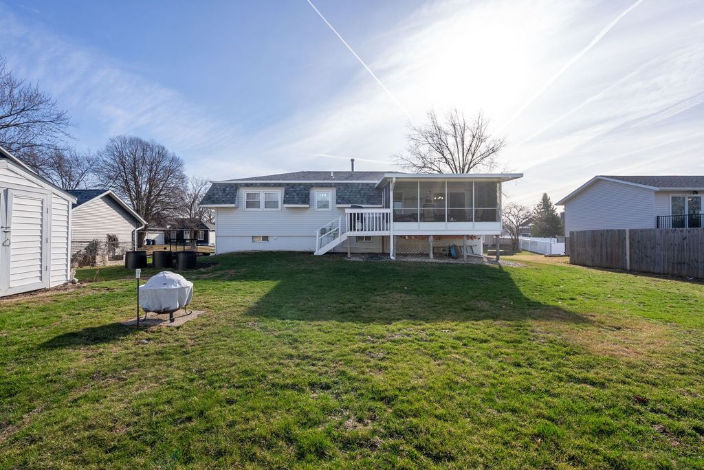 Welcome home to this well-maintained 3-bedroom, 2.5-bath split foyer in Northwest Davenport, conveniently located near schools, parks, and everyday amenities. Major updates have already been taken care of, including HVAC in 2017, roof replacements on the house, shed, and screened porch in 2023, plus some updated windows and a newer front door. The nicely finished lower-level rec room offers additional living space along with a convenient half bath. You'll love the oversized 2-car garage along with an extra parking slab outside-perfect for additional vehicles, trailers, or recreational toys. Off the dining room, the beautiful screened porch provides a peaceful place to relax while overlooking the large, flat backyard-ideal for entertaining on summer nights. The spacious primary suite with attached bath adds to the appeal, making this home one you won't want to miss. " All information including square footage tax info and dates are estimated and should be fully verified buy buyers and buyers agents for complete accuracy"