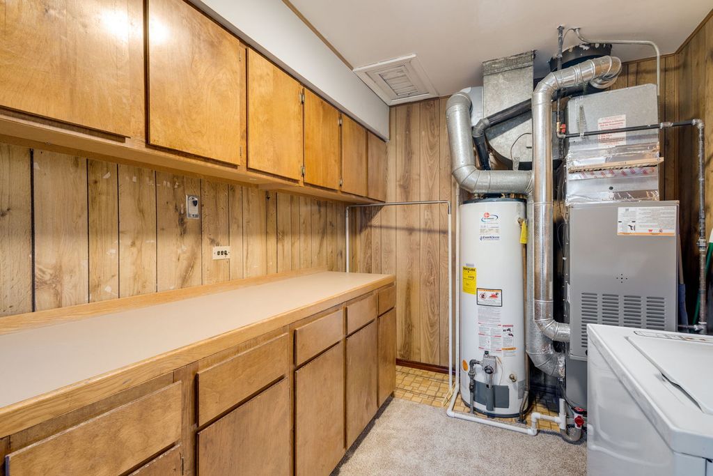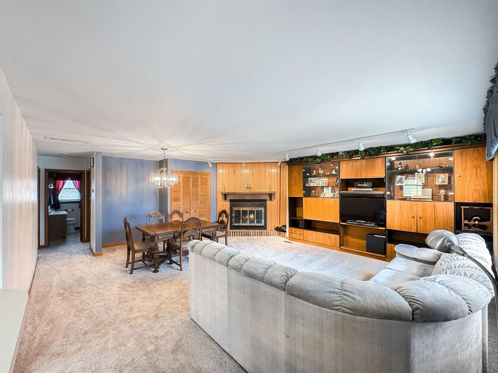 Charming and well-maintained 2-bedroom, 1-bath ranch offering comfortable single-level living! Originally a 3-bedroom home, this property was thoughtfully reconfigured to create a more open and spacious layout, featuring an expanded living room and dedicated dining area. The large front room flows seamlessly into the dining space and showcases a cozy fireplace, along with brand new carpet that continues throughout the home and into both bedrooms. An added benefit-hardwood flooring lies beneath the carpet, offering future flexibility and value. The eat-in kitchen includes a breakfast bar and plenty of cabinet storage, making it both functional and inviting. A separate laundry room adds convenience with additional cabinet space and a counter perfect for folding. The primary bedroom offers the convenience of two closets, while the second bedroom features a sliding glass door that leads directly to a large deck overlooking a well-maintained backyard-ideal for relaxing or entertaining. Additional highlights include a one-car garage with gas heater and an attached workshop, perfect for hobbies, storage, or extra workspace. Recent updates include a roof replaced in 2018 and a furnace and A/C that are just 1 year old, providing peace of mind for years to come. A fantastic opportunity to own a move-in ready home with great space and potential! Estate Sale being Sold AS/IS