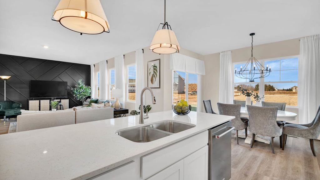 Envision yourself at 1862 Keating Dr in Aurora, Illinois, a home in our brand new, highly sought after Wheatland Crossing community, available this Winter! This Emerson plan offers 3044 square feet of open living space with 5 bedrooms, 3 car Garage, Loft and 3 full baths. Wonderful study/flex room greets you at the front of the home and is a great space for a home office, den, playroom, or formal living room. Beautiful designer cabinetry, butler's pantry, and a center island are the heart of this gourmet kitchen overlooking the open great room. 9ft ceilings throughout the 1st floor complement this open floor plan. The staircase leads you to the oversized primary bedroom with an en-suite bath, dual vanity, and walk-in closet. The secondary bedroom sizes are large and share the hall bath. Enjoy a conveniently placed laundry room on the second floor. A full basement offers storage plus plenty of space to finish in the future. Enjoy a professionally landscaped and fully sodded homesite. All Chicago homes include our America's Smart Home Technology, featuring a smart video doorbell, smart Honeywell thermostat, smart door lock, Deako smart light switches and more. Actual home built may vary. Photos of similar home, as built may vary.