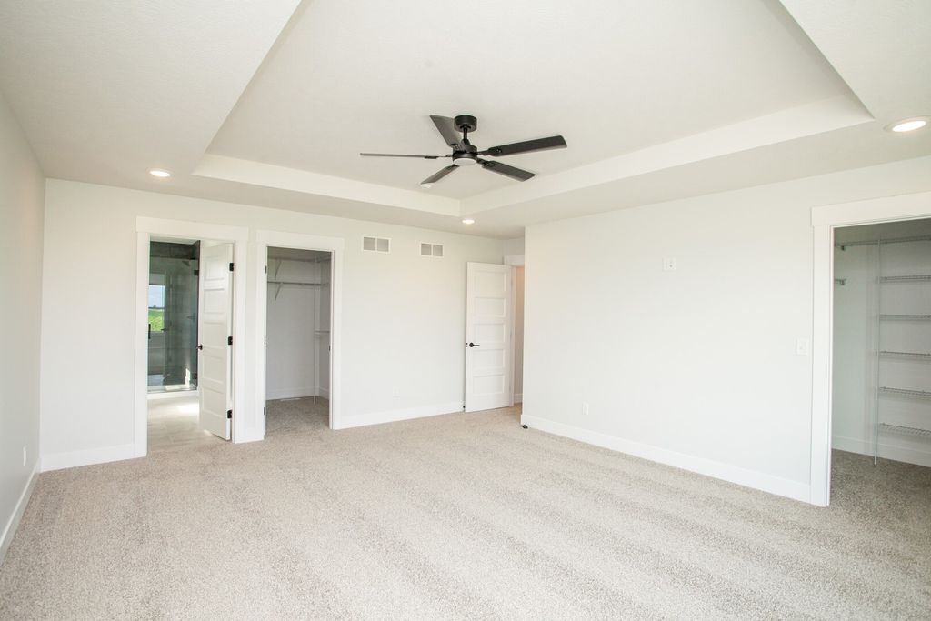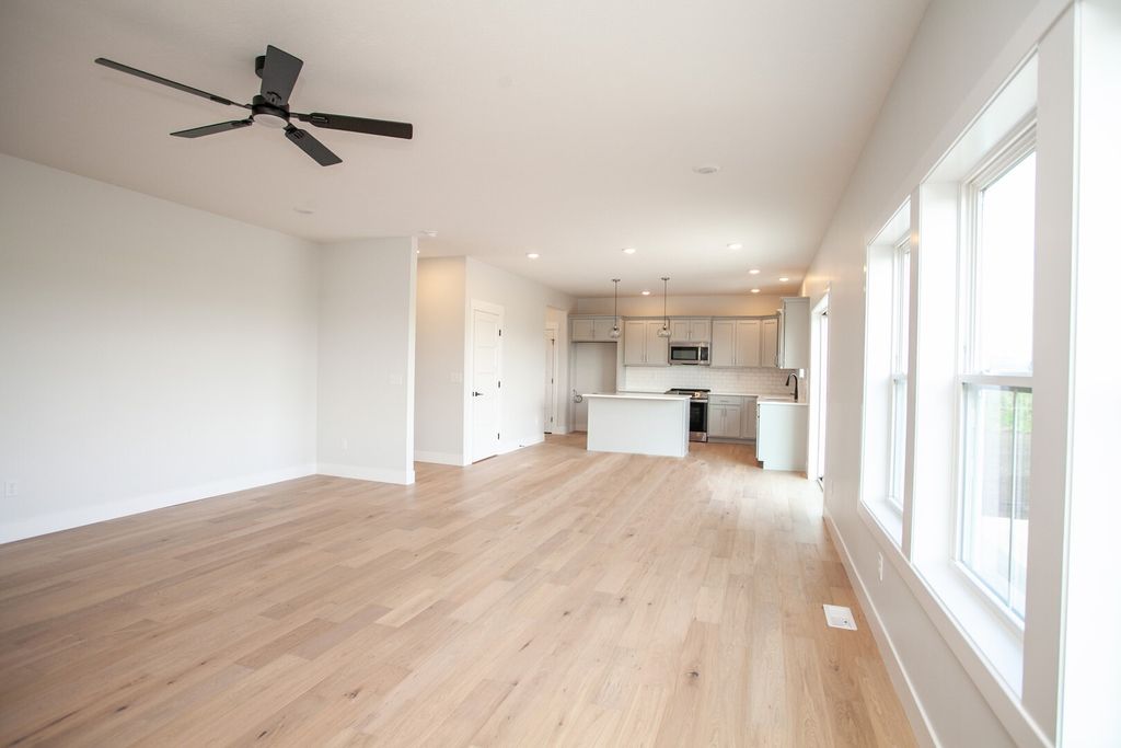 Stunning New Construction in Beecher Trails - Modern Comfort Meets Thoughtful Design Welcome to this exceptional, brand-new two-story home on a desirable corner lot in the sought-after Heather Ridge subdivision of North Normal. With a unique south-facing orientation, attractive side-load driveway, and spacious split garage, this home offers outstanding curb appeal and ample parking. Step inside to an open and inviting floor plan featuring four generously sized bedrooms upstairs, a convenient second-floor laundry, and a fully finished basement with 9-foot ceilings, bringing the total to five bedrooms and 3.5 bathrooms. The main level showcases rich hardwood flooring and a versatile front flex room-ideal for a home office, dining room, playroom, or formal sitting area. The heart of the home is the spacious family room, highlighted by a dramatic floor-to-ceiling stone gas fireplace with temperature-controlled blower, flanked by custom built-ins for both style and functionality. The kitchen and baths feature soft-close painted shaker cabinetry, complemented by modern LED mirrors and energy-efficient LED puck lighting throughout, including exterior soffit lighting that beautifully illuminates the home at night. Thoughtful details continue with sleek 5-panel doors, black hardware, and durable 2x6 exterior construction with R-19 insulation for impressive energy efficiency. The fully insulated garage is packed with extras, including a gas line stub for future heating, hot and cold water spigot, and a 220-volt outlet ready for an electric vehicle charger. Additional highlights include 200-amp electrical service, 50-year shingles, USB charging ports throughout, and a pop-up outlet in the kitchen island. Built by Mark Bowers Homes, this property includes a 1-year builder warranty, offering peace of mind along with exceptional craftsmanship and modern design. Don't miss the opportunity to own this beautifully designed, energy-efficient home in Heather Ridge-where quality, comfort, and style come together seamlessly.