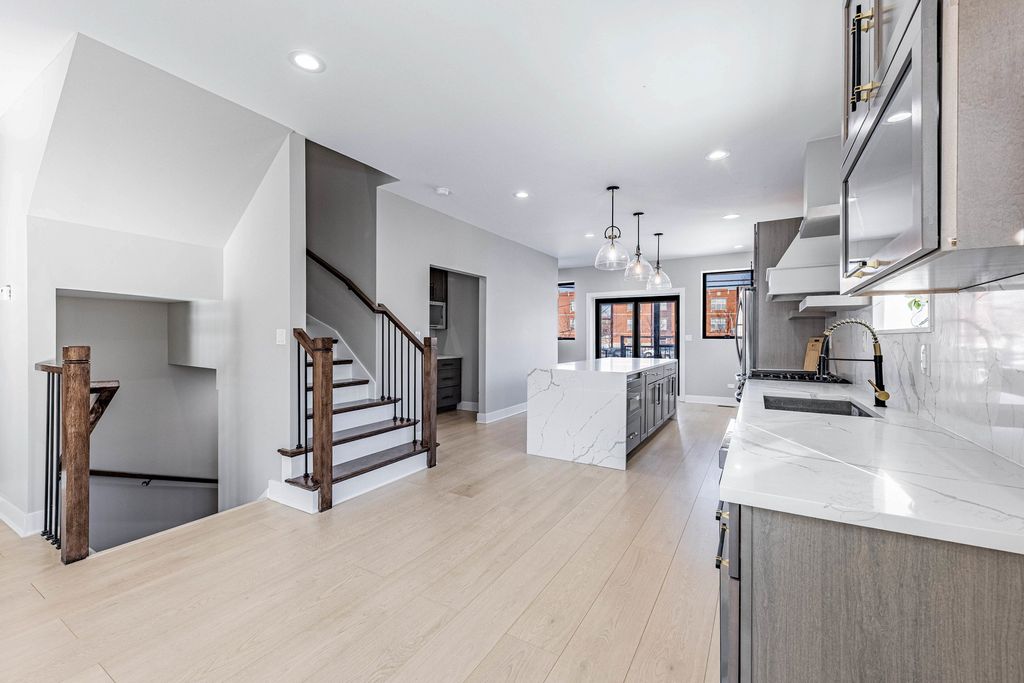 Welcome to 3530 W. Van Buren, a stunning modern residence that is move in ready and offers over 1,900 sq. ft. of sophisticated living with sleek finishes, an open concept layout, and oversized windows that fill the home with natural light. The home features a luxury primary suite plus two versatile bedrooms that can easily function as guest rooms, a home office, or nursery, along with 3.5 designer bathrooms. The primary suite serves as a serene retreat with a spa inspired bath, custom walk in closet, and private balcony, creating a perfect space to unwind. The chef's kitchen is a true showpiece featuring a dramatic waterfall island, premium stainless steel appliances, custom cabinetry, and an elegant butler's pantry, flowing seamlessly into the living area anchored by a contemporary fireplace and designer feature wall ideal for entertaining. The expansive lower level offers additional flexible space for a media room, gym, guest suite, or home office. Wide plank hardwood floors, a private rear deck and porch, and thoughtful design throughout elevate everyday living. Ideally located with quick access to the I 290 Expressway and CTA Blue Line, this home combines modern luxury, comfort, and convenience. Schedule your showing today and experience it for yourself.