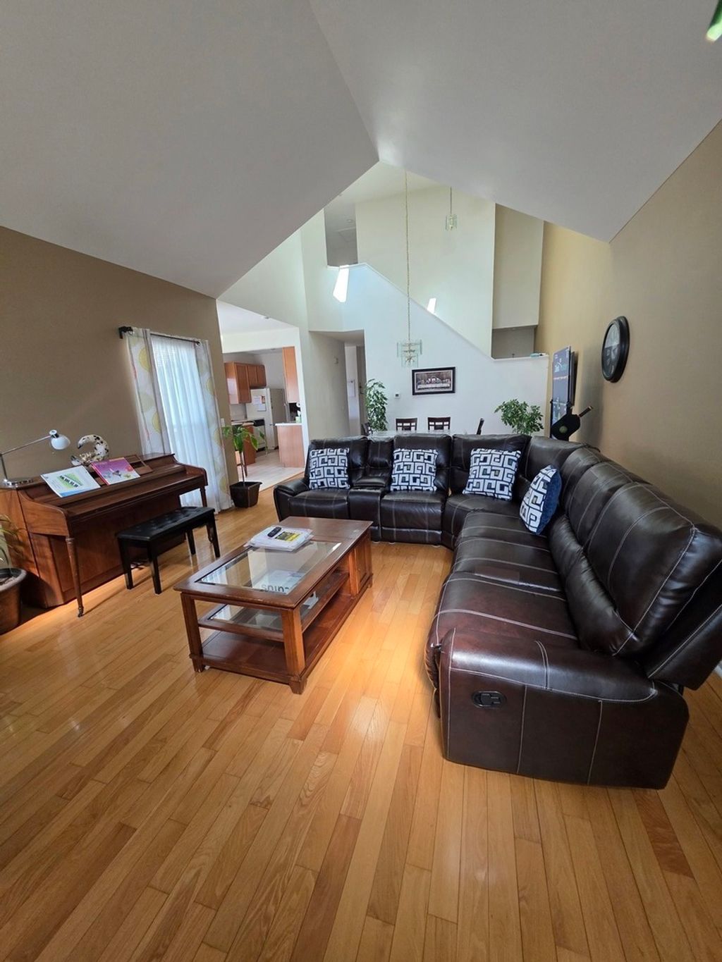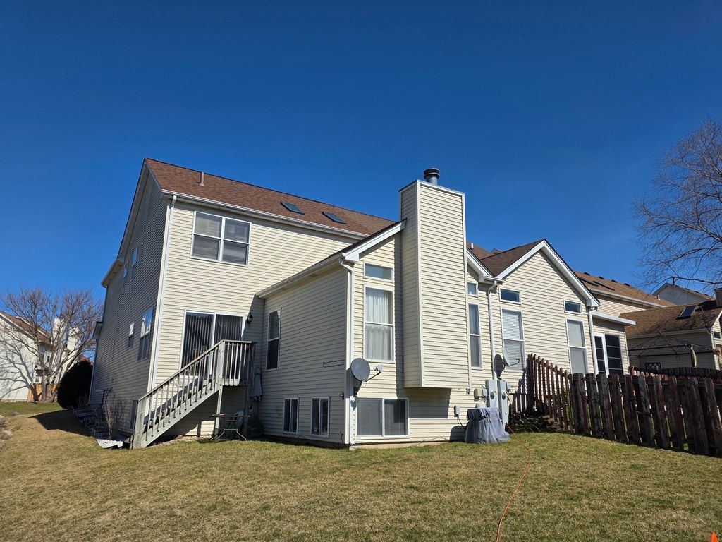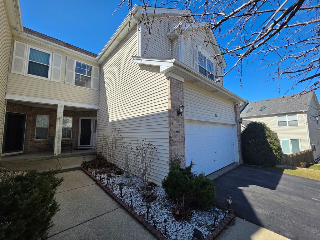Great location! Wonderful schools! Spacious duplex boasting 3 bedrooms, 3.5 baths, eat-in kitchen and so much more! The front walkway to a covered front porch is adorned with perrenial flower beds! The nice entryway/foyer inside the front door is large and has a conveniently located 1/2 bath! A combo living room/dining room on the main floor is open to the kitchen and has hardwood floors, skylites and a gas log fireplace! The kitchen has an ample eating area with table space and a sliding glass door to the deck. All appliances stay! Take the deck stairway down to the back yard and enjoy the outdoors while at home! The conveniently located laundry room is next to the kitchen on the way to the attached garage. All 3 bedrooms are located on the second floor. The master suite includes vaulted ceilings, 2 walk-in closets and a full bath! 2 more bedrooms and another full bath for family or guests are nearby. The full finished rec-room is located in the basement which has partial exposure! The large rec-room windows allow for lots of natural light! Another full bath, storage room, and the utility room are also located in the basement. Some updates include: roof and skylites were newly replaced in 2021, the furnace and central air were replaced 12/31/22, the rec-room carpet was replaced in 2023, a new hot water heater was installed in 2018, the washer and dryer were new in 2019, and the microwave is newer as well. Home to be sold AS IS.