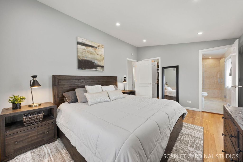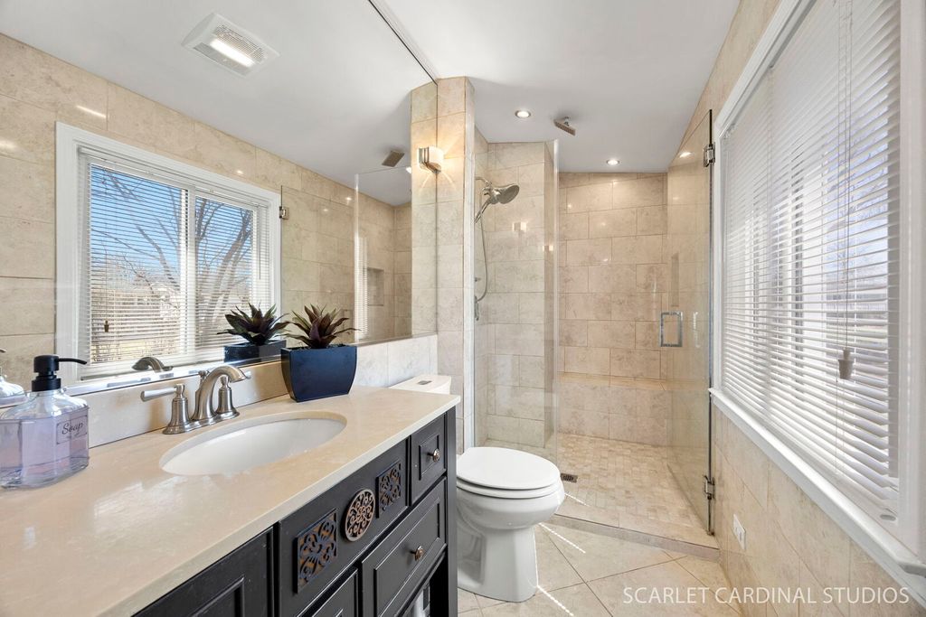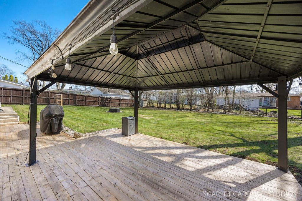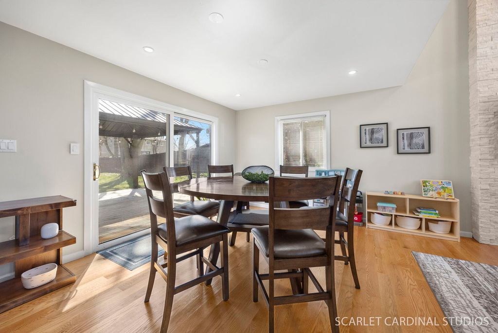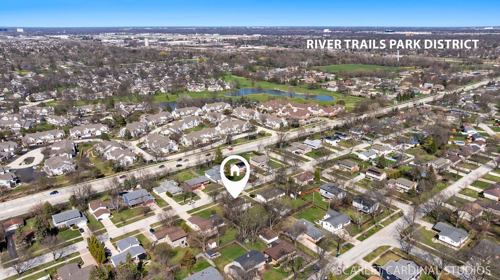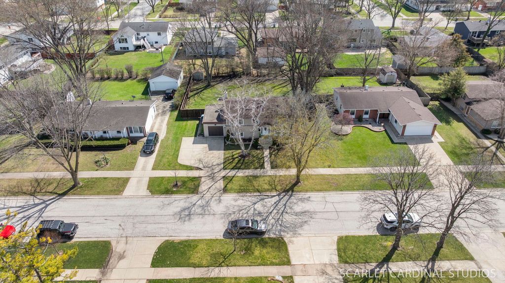 This delightful home is full of upgrades and finishes that make it SHINE. With three bedrooms and THREE FULL BATHS plus a flex room there is plenty of indoor living space to complement the large backyard and new deck (2024)! When you first walk in, the two story living room draws your eye to the dramatic fireplace and light fixture. Large windows and two story curtains give the space volume and light inviting you to explore the open concept floor plan that flows from living room to dining room to kitchen and is perfect for entertaining your family and friends. Hardwood floors (2022) make the space feel warm and inviting. Recessed lighting (2022) in the dining and kitchen spotlight granite countertops with island seating, all stainless appliances, and abundant cabinet storage. The beautiful full bath with tile shower and adjoining flex room (office, exercise, or play room) on the lower level provides multiple options for use. Upstairs there are 3 bedrooms and 2 beautifully appointed full baths. The primary suite boasts a large walk in closet and the ensuite bath has a large walk in shower with built in bench. The 2nd upstairs bath has a tub and updated finishes. Outside, the large deck with covered gazebo (stays with property), and shade from mature trees make the back yard an amazing entertainment space. The fenced yard provides security and privacy. At the front of the house, a large side skirt provides two parking spots in the concrete driveway along with a one car garage. Within walking distance of Euclid Elementary School and a short distance from shopping and restaurants, Rob Roy Golf Course, River Trails Park District parks, and the Marvin S. Weiss Community Center. Recent Key Updates: Furnace 2022, Water Heater 2023, Hardwood Floors 2022, Recessed Can Lighting 2022. Come see this well kept charmer for yourself!