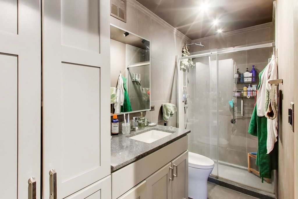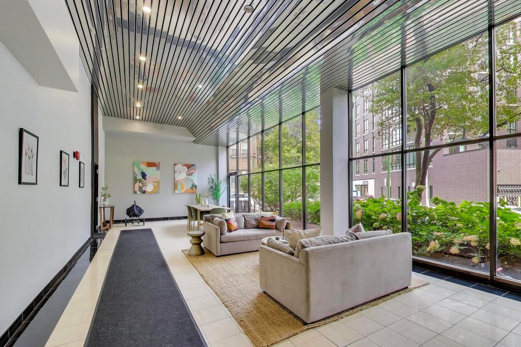 Stunning high-floor 1-bedroom with sweeping unobstructed views in prime East Lincoln Park. This beautifully updated home features a bright, open-concept living and dining space with oversized windows that flood the unit with natural light. The modern kitchen is outfitted with rich espresso cabinetry, sleek quartz countertops, stainless steel appliances, subway tile backsplash, and a large breakfast bar, perfect for entertaining. Wide-plank flooring runs throughout. The spacious bedroom easily accommodates a king-sized bed and offers excellent closet space, including a walk-in closet. The updated bathroom features a stylish vanity, onyx shower base, and modern fixtures. Enjoy full-service living in a well-maintained building with 24-hour door staff, fitness center, laundry room, party room, and a recently updated rooftop deck with grills and a pool-offering incredible views of the city and lake. Garage parking and additional storage included. Located on a quiet, tree-lined street just steps from the lakefront, Lincoln Park, top-rated dining, shopping, and nightlife; this is city living at its best.