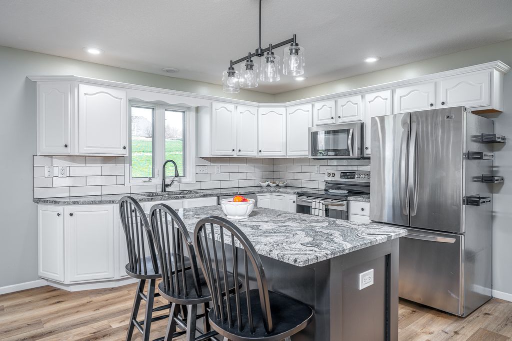 Step into this beautifully updated 4-bedroom, 3 1/2-bath home in North Scott School district. Life is good on this spacious half-acre terraced lot just steps from Scott County Park and the city-wide bike path. With a 3-car attached garage and a fully fenced backyard, this property blends privacy, functionality, and outdoor enjoyment. Inside, you'll find new luxury plank flooring throughout the main level and basement, a cozy gas fireplace in the family room, and a fully remodeled primary bathroom that feels like an exclusive retreat. The eat-in kitchen features granite countertops, a large center island, and plenty of space for gathering and entertaining. Downstairs you will find more living space. Office or den, rec-room, a 4th bedroom and another full bathroom. Enjoy evenings around the backyard fire pit or relax on the deck overlooking the wooded backdrop. Whether you're hosting guests or enjoying quiet mornings, this home offers the perfect balance of style and serenity. This home also comes with an AHS Home Warranty.