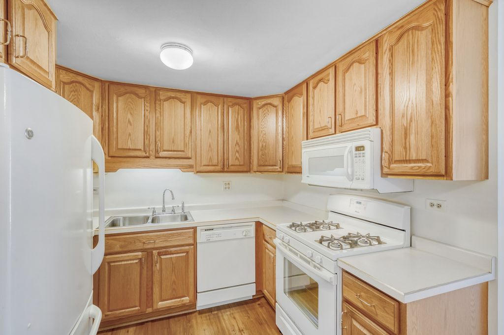 Introducing this rarely found two bedroom, one and a half bath, ranch quad home located in the Weathersfield Commons Subdivision. Brand new carpeting throughout. Private front door entrance with ceramic tile flooring and entry closet. Spacious carpeted living room with patio doors for natural light, adjoins to the dining room area, with vinyl wood flooring and lighted ceiling fan. Kitchen features oak cabinets, woodgrain vinyl plank flooring, and all white appliances. Generous sized carpeted bedroom with nice sized closets. Impeccably clean shared full bathroom. Laundry room with 1 year new stacked washer and dryer, and some extra cabinets for storage. There is a custom powder room adjacent to the laundry. Attached garage with direct entry to the home and automatic door opener. Investor friendly. For your summer enjoyment there is a nearby park with playground and pool. Enjoy all that Schaumburg has to offer, such as Summer Breeze concerts, Spring Valley Nature Sanctuary, Bison's Bluff Play area, and so much more! Award winning Schools include Campanelli Elementary School, Jane Addams, and District 211 Schaumburg High School. Minutes from Woodfield, the library, shopping, expressways and train station.