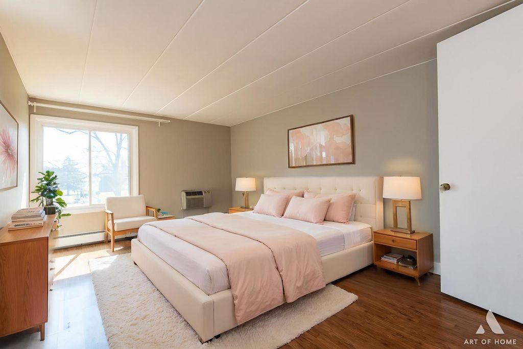This beautiful, fully remodeled second-floor residence is ready to be your next home. Featuring 2 bedrooms and 2 full bathrooms in an elevator building, this home offers an unbeatable location and high-end finishes throughout. Every detail was executed with modern design, premium materials, and professional craftsmanship. The stunning kitchen is a chef's dream, boasting a large island, 42-inch custom cabinetry, quartz countertops, and superior stainless steel appliances. The open-concept layout seamlessly connects the kitchen, living, and dining areas, complemented by gorgeous flooring and designer touches that invite an abundance of natural light. Step out onto the expansive, south-facing balcony to relax or grill while overlooking the peaceful courtyard. The primary suite features a luxurious private bathroom and a spacious walk-in closet. Residents enjoy an incredible array of amenities, including indoor and outdoor pools, a sauna, tennis and basketball courts, a playground, storage, and on-site laundry. Perfect for an owner-occupant or a savvy investor-rentals are allowed! The monthly association conveniently includes heat, water, and more. Located in a wonderful suburban neighborhood near beautiful parks and schools, you are just minutes from major highways, the Metra station, and Randhurst Village (Costco, Jewel, Home Depot, and AMC). You truly have to see this one-of-a-kind home to appreciate it!