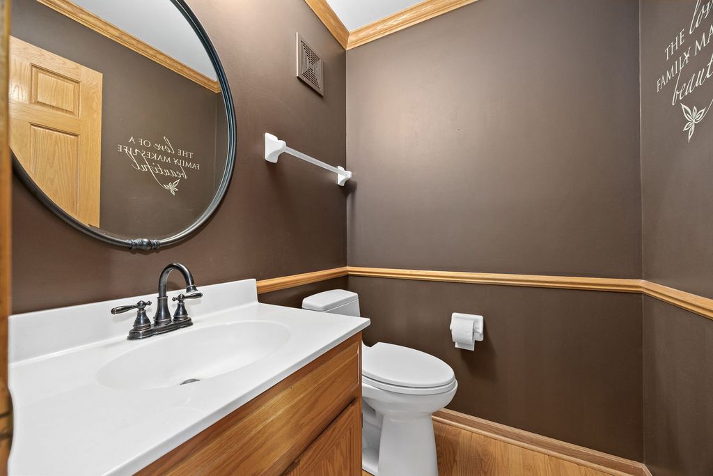 Warm, welcoming, and impeccably maintained, this custom-built two-story home blends classic design with an open, airy layout. Just off the foyer, the elegant living room and formal dining room both feature gleaming hardwood floors, offering a sophisticated and seamless flow that is perfect for entertaining. The kitchen is both stunning and functional, showcasing brand-new granite countertops and newer stainless steel appliances. Adjacent to the heart of the home, the impressive oversized family room offers vaulted ceilings and a brick fireplace, creating a space that feels expansive yet inviting. Upstairs, the vaulted primary suite serves as a relaxing retreat with a private water closet, soaking tub, and an updated separate shower with classic subway tile. The beautifully landscaped fenced yard features vibrant flower beds, a spacious patio, and a separate deck-perfect for enjoying both sunrise mornings and sunset evenings. Ideally located directly across from the neighborhood park, this home offers both comfort and convenience in a picturesque setting. Updated features include a New Roof and New HVAC! Come take a look today!