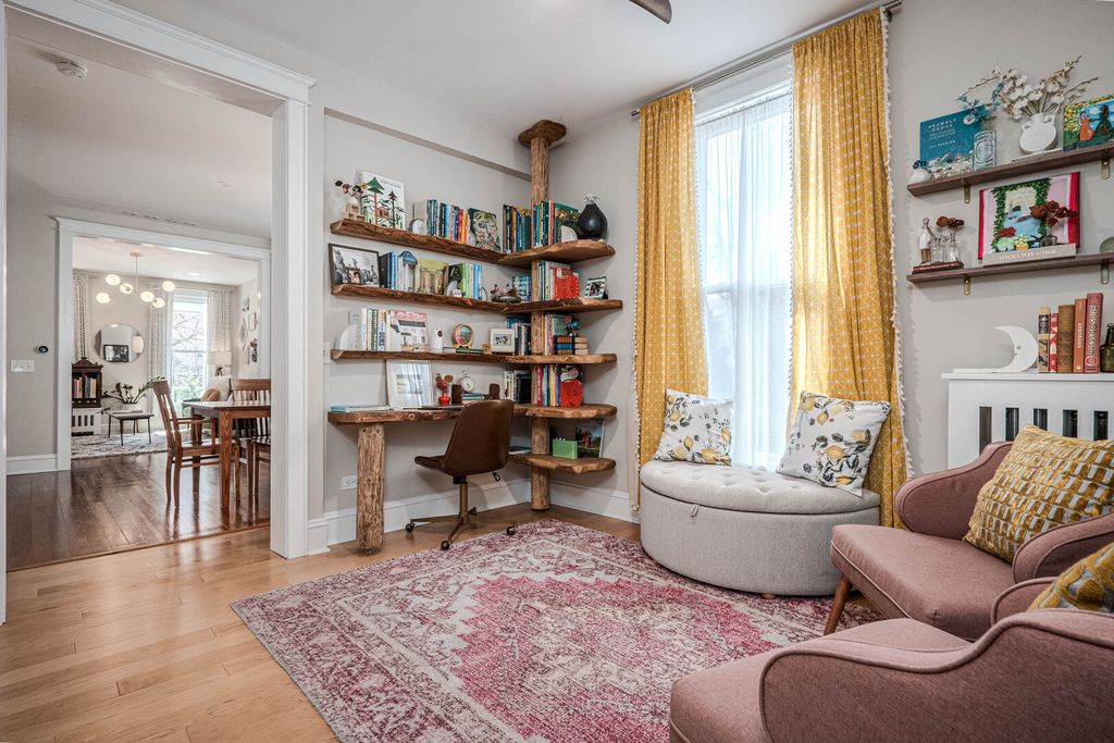 OPEN 11-1 Sat 4/4 | OFFERS DUE 12pm MON 4/6. Welcome home to this enchanting 5-bedroom | 3.1-bath South Evanston farmhouse, where timeless charm meets thoughtful modern updates. Beautifully restored, curated, and full of artisan spirit, this home offers the perfect blend of vintage appeal and today's conveniences. A welcoming covered front porch invites you in and opens to a private Foyer anchored by a dramatic mahogany staircase, setting the tone for this unexpectedly spacious, flexible and thoughtfully designed home. Hardwood floors and updated modern light fixtures enhance the warm, magical, and inviting feel throughout. The main level is ideal for both everyday living and entertaining, featuring soaring 9-foot ceilings and impressive 7-foot windows that fill the home with an abundance of natural light. A generous Living Room flows seamlessly into the Dining Room and updated culinary Kitchen - the heart of the home. Designed with both style and function in mind, the Kitchen offers island seating, painted cabinetry, a convenient walk-in pantry, and high-end appliances (2020-2021), including a Fisher & Paykel refrigerator, GE Cafe range, and Bosch dishwasher. The main level also includes a versatile Den with a custom-built, whimsical yet functional rustic woodland live-edge corner desk, along with a private Guest Bedroom featuring an Ensuite Bath with dual sinks, jetted tub, and bidet. The Guest Bedroom also offers an adjoining Sunroom currently used as an artist's studio. These flexible spaces easily adapt to your needs as a home office, guest suite, in-law arrangement, or additional living space. A stylish Powder Room and a combination Mudroom/Laundry with LG washer & dryer (2020) complete the main level. Upstairs, the bright Primary Suite with skylight offers a tranquil retreat with a beautifully appointed Ensuite Bath, including a double vanity, soaking tub with overhead shower, and two nice sized closets. Three additional Bedrooms provide exceptional flexibility, with one large enough to serve as a family room, office, playroom, or studio. A full Hall Bath and a cozy Nook -perfect for reading, a writing desk, yoga, or potential walk-in closet or second-floor laundry - round out the upper level. Major updates include newer windows, newer siding and roof (2018), SpacePak central air (2019), high-efficiency boiler with two zones (2024), 75 Gal water heater (2024) 200-amp electrical service (2024), offering peace of mind for years to come. Additional features include an unfinished basement, detached 2-car garage, and a charming shed ideal for storage, hobbies, or creative use. Ideally located near parks, Robert Crown Community Center, CTA and Metra, the Main Dempster Mile shopping and dining district, as well as Evanston's beautiful beaches and lakefront bike paths. A truly special home. Do not miss this one-of-a-kind treasure!