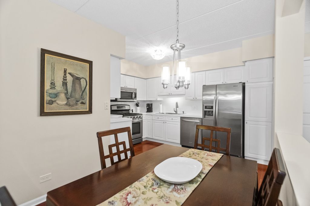 Beautiful, light-filled 2 bedroom, 2 bath condominium in The Enclave. This unit offers generous space and an inviting open floor plan. The expansive living room flows seamlessly to a large private balcony overlooking a charming courtyard-perfect for relaxing or entertaining. The dining area provides ideal space for hosting, while the eat-in kitchen features stainless steel appliances-including a gas range, white cabinets and laminate countertops. The spacious primary suite includes a large walk-in closet, additional linen closet and a bath with Jacuzzi tub. Additional highlights include in-unit laundry. Heated underground parking, space #19, adds year-round convenience. Well managed, pet friendly building. Fabulous location-convenient to Evanston and Skokie shopping, dining and entertainment. Easy access to the expressway!