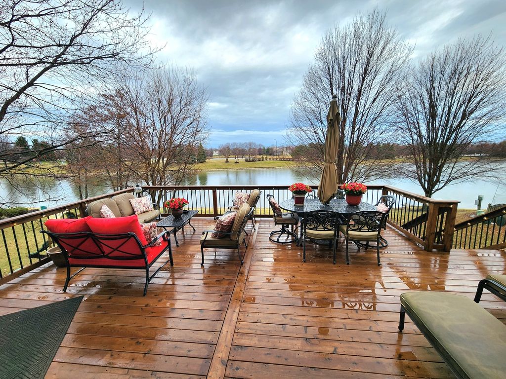 Wake up to shimmering water views, enjoy quiet sunset evenings and morning coffee on your expansive deck, and experience the rare combination of privacy, scenery, and convenience. Homes with walkout basements and direct pond and fountain views in this area simply don't come available often - and this one delivers on every level. Welcome to this stunning 4-bedroom, 3.5-bathroom home in the highly sought-after Plainfield North area, offering over 2,600 sq ft of beautifully appointed living space across multiple levels. Step inside to a bright, open layout designed for modern living, where soaring two-story ceilings and an impressive floor-to-ceiling fireplace anchor the main living area in warmth and drama. The spacious main level is flooded with natural light, seamlessly connecting large kitchen and living areas that were made for entertaining. Whether you're hosting a crowd or enjoying a quiet evening in, this home simply works. Step outside to your walkout lower level and expansive deck - both offering unobstructed views of the serene pond and its centerpiece fountain. This is outdoor living at its finest, in a setting that feels like a private retreat while remaining close to the shops, dining, and top-rated schools of the Plainfield North corridor.