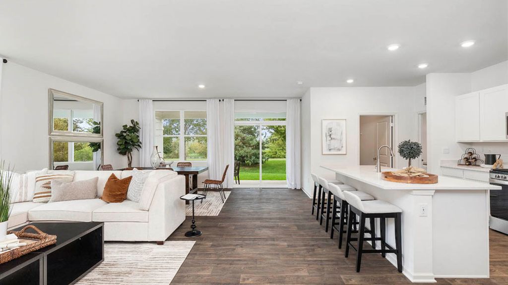 Envision yourself at 17551 West Windemere Circle in Lockport, Illinois, a beautiful new home in the sought after Lago Vista community. This ranch style home will be available just in time for a summer move-in! The Clifton plan offers 1,865 square feet of living space with 2 spacious bedrooms, two full bathrooms, a flex room great for a home office or den, and a lookout basement. At the front of the home, one secondary bedroom adjacent to bath features a tub shower and a linen closet. The open concept combines the great room and kitchen, allowing homeowners to easily transition from one space to the other. In the kitchen, you'll find everything you need and more; quartz countertops, 42' shaker cabinetry, stainless steel appliances, corner walk-in pantry, and a large center island with bar seating. Homeowners can easily enjoy the outdoors on a wooden deck adjoining the great room. Your owner's suite is tucked in the rear of the home, creating a private getaway. The bath includes a double-sink vanity, walk-in shower, a private water closet, and a huge walk-in closet with plenty of room for storage and comfort. Each Clifton home include our America's Smart Home Technology, featuring a smart video doorbell, smart Honeywell thermostat, smart door lock, and more; allowing you to control and monitor your home from your couch or from 500 miles away. Photos are representative of plan only and may vary as built.