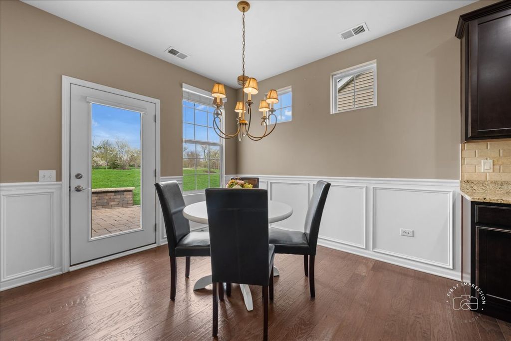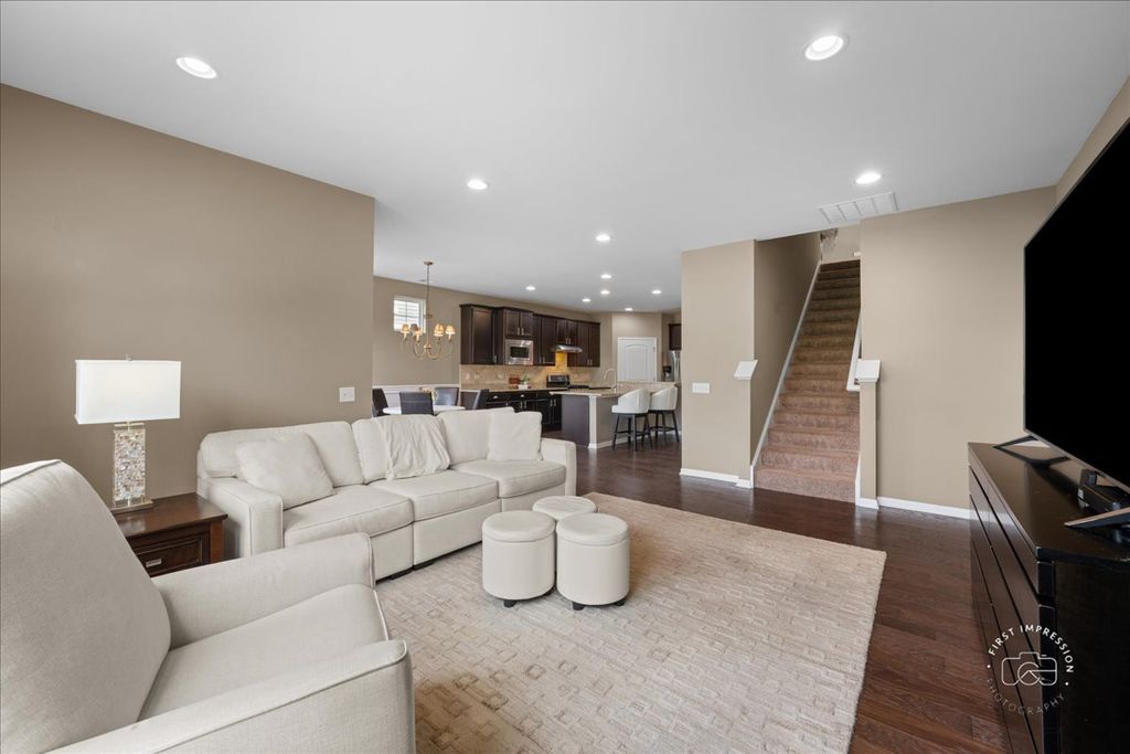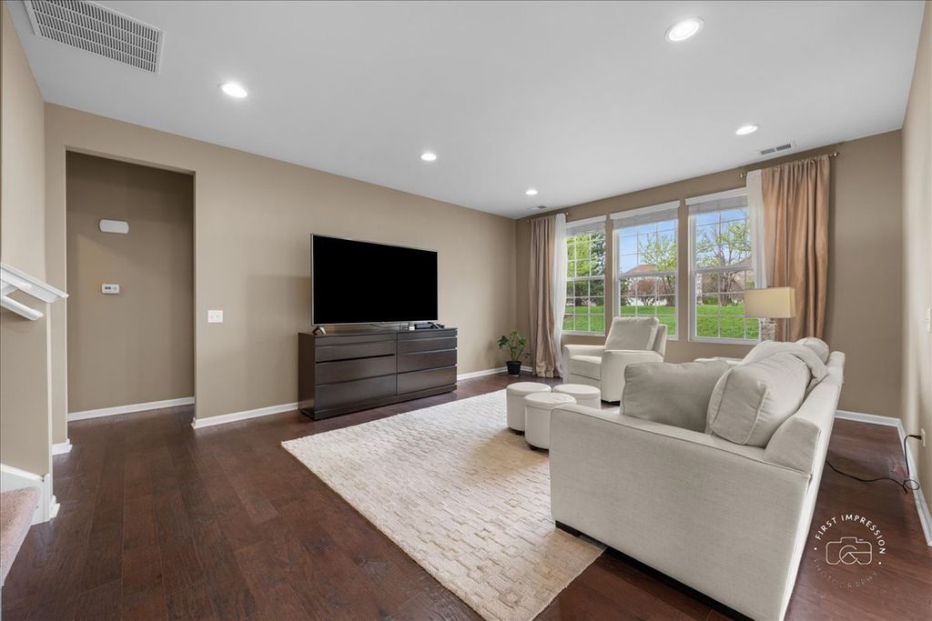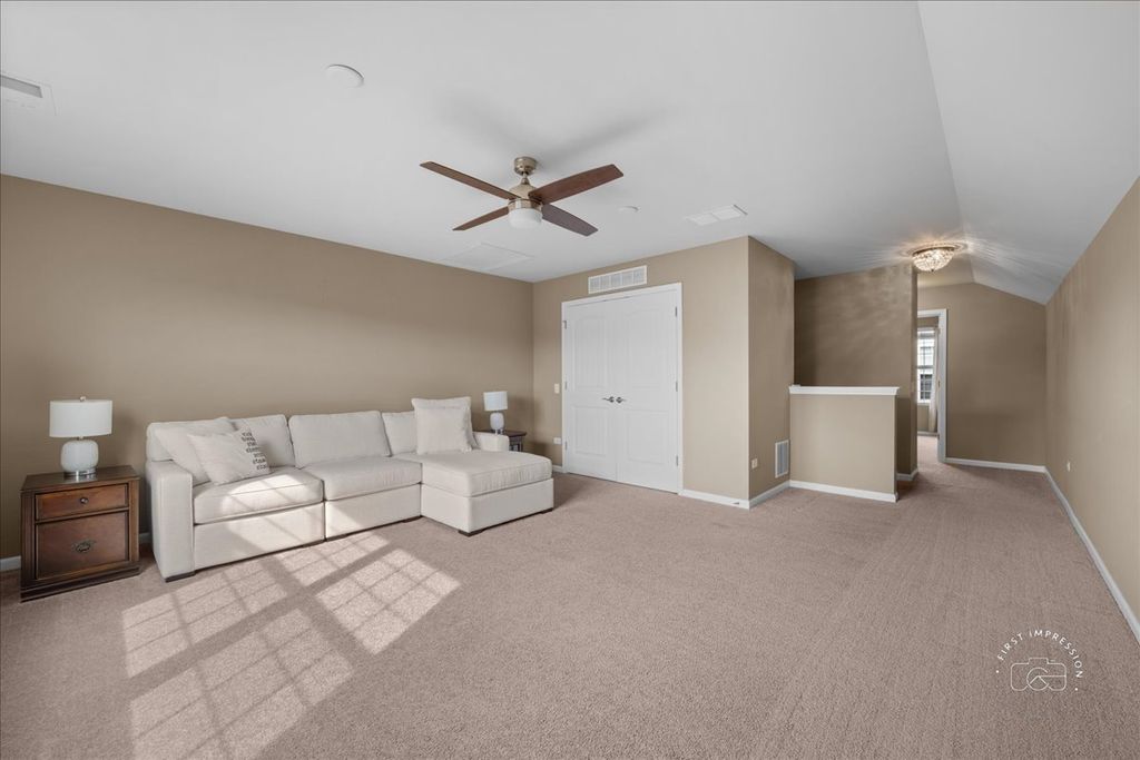 Welcome to Edgewater by Del Webb, a 55+ active adult community offering low-maintenance living and resort-style amenities. This thoughtfully designed home features a spacious kitchen with granite countertops, an oversized island, abundant cabinetry, walk-in pantry, and a raised dishwasher for added convenience. Hardwood floors flow throughout the main level, where the kitchen opens seamlessly to a large eating area and inviting family room. The main level includes two bedrooms and two full baths, highlighted by a generous primary suite with a private bath featuring double sinks, a separate tub and shower, and a walk-in closet. Laundry is ideally located just off the primary bedroom. A dedicated office with French doors, mudroom off the garage, and an extended heated 2-car garage add to the home's functionality. Upstairs, you'll find a private retreat with an additional bedroom, full bath, and second living area-perfect for guests, extended family, or a caregiver. Step outside to relax on the brick paver patio, and enjoy the convenience of an HOA that covers lawn care and snow removal. Edgewater residents have access to a clubhouse, pool, fitness center, and a variety of social activities, all within a 24/7 gated community. Ideally located near Randall Road with easy access to shopping, dining, and golf. Roof, Siding, Furnace and Hot Water Heater all new in 2024 Welcome home.