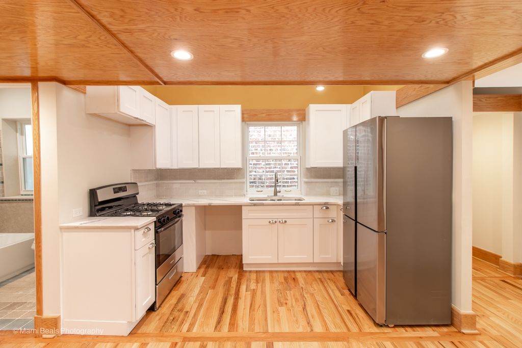 Modernist Gem in the Heart of Woodlawn! Creative, cool, and highly functional, this impeccably updated Woodlawn bungalow offers a refreshing departure from the everyday. Blending Modernist aesthetics with Prairie-inspired details, 6334 S. Saint Lawrence is a move-in-ready sanctuary designed for the art-forward homeowner. The front entry opens into a voluminous, vaulted-ceiling great room, creating a gallery-like atmosphere perfect for showcasing a curated collection of furniture & art. Feel happy thanks to strategic skylights, the interior remains bright and airy even on the grayest Chicago winter days. The Chef's Alcove kitchen features a smart U-shaped design with brand-new appliances and sleek, minimalist lines. The main level hosts two spacious bedrooms and two full bathrooms, including a light-filled primary suite with a private en suite, that opens to the massive rear deck. Frank Lloyd Wright would approve of the custom-crafted oak staircase leads to the fully realized, walk-out lower level, which offers a generous family room and a private third bedroom with its own en suite bath-the perfect setup for guests or a quiet home office. Enjoy year-round comfort and peace of mind with zoned central heating and air conditioning. Outside, the massive gated rear yard is an entertainer's dream, featuring a massive rear deck with dramatic full-width stairs that invite you down to the grassy lawn and brand-new gated parking pad. Located just blocks from the Cottage Grove Green Line station and surrounded by the rapid development defining the Woodlawn corridor, this is a rare opportunity to own a uniquely designed, right-sized single-family home for the price of a local condo. Every detail has been carefully considered-now it's yours to enjoy.