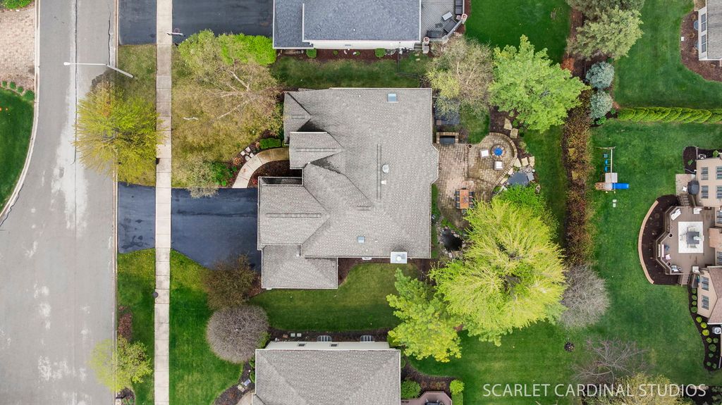 This exceptional Stillwater home checks every box! Ideally situated on a quiet cul-de-sac just steps from the Stillwater Swim & Tennis Club and located in highly acclaimed District 204, including Neuqua Valley High School. Beautifully maintained and thoughtfully updated throughout, it offers the perfect blend of location, condition, and lifestyle. Inside, you'll find an open and inviting floor plan with maple hardwood floors, soaring ceilings, and abundant natural light, highlighted by a dramatic two-story family room with a wall of windows, a private main floor office, formal living and dining rooms, and a functional mudroom/laundry area with access to the three-car garage. The bright, white kitchen is designed for both everyday living and entertaining, featuring quartz and granite countertops, a marble subway tile backsplash, stainless steel appliances, a walk-in pantry, and a spacious eating area with direct access to the backyard. Step outside to a professionally landscaped, fully fenced yard complete with brick paver patios, tranquil ponds, a fire pit, mature trees, and a dedicated grill area with a gas line, perfect for outdoor dining. Upstairs offers four generously sized bedrooms with ample closet space, including a spacious primary suite with a double tray ceiling, bay window, and sitting area, along with a fully remodeled spa-inspired primary bath featuring high-end finishes, dual vanities, and a beautifully designed walk-in shower. The finished basement provides additional living space with a recreation room, fitness area, play room, fifth bedroom, full bath, and abundant storage. Major updates include a new primary bath, hall bath refresh and tv room in basement. Conveniently located near the Welch, Scullen, and Neuqua school path, this home is truly move-in ready.