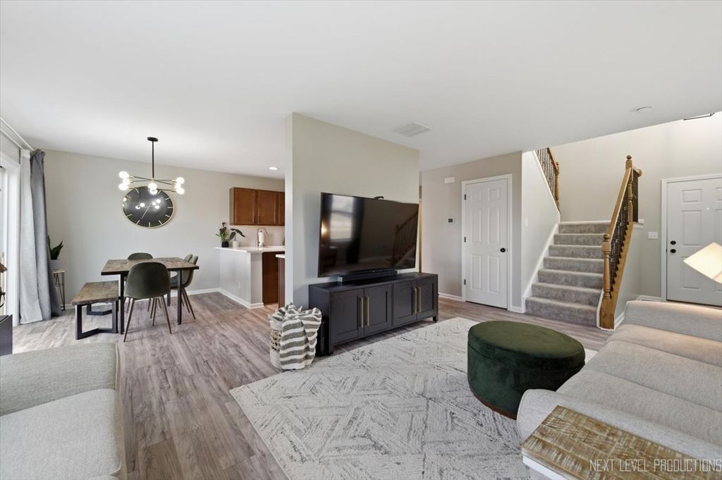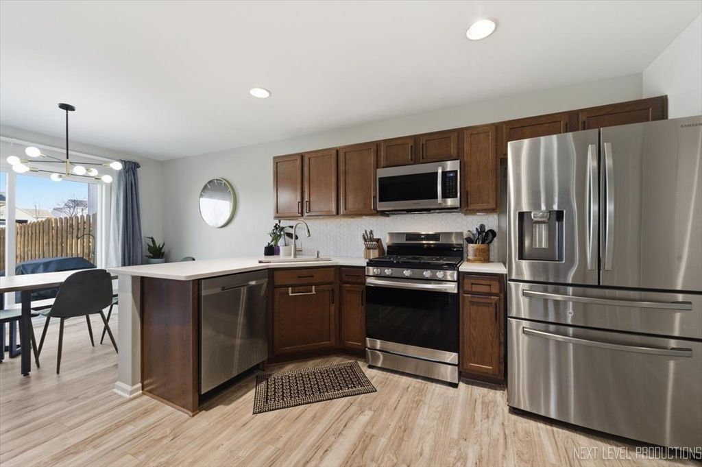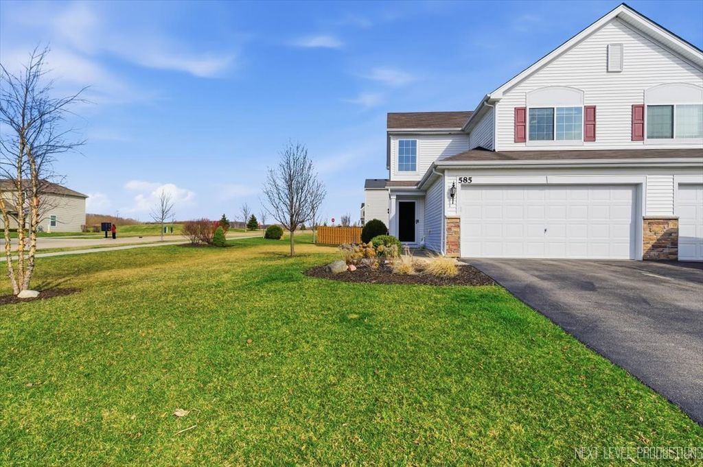 Welcome to this freshly updated 3-bedroom, 2.1-bath duplex in Tuscany Woods. This move-in-ready home features numerous recent updates, including new windows, fresh paint, new luxury vinyl plank flooring on the main level and in all bathrooms, newer carpeting, and new light fixtures throughout. The kitchen has been renovated with new quartz countertops, a honeycomb tile backsplash, and new stainless steel appliances. The primary bedroom includes an updated private bath with a new subway tile shower and a large walk-in closet with built-ins. The property sits on a corner lot featuring a new stamped concrete patio. Since two sides of the yard are already framed by neighboring fences, completing a fully fenced yard would be simple. The home also includes an oversized two-car garage. Located in Hampshire, you will enjoy quaint downtown shopping and restaurants, easy access to Route 72 and I-90 and the annual Coon Creek Country Days festival.