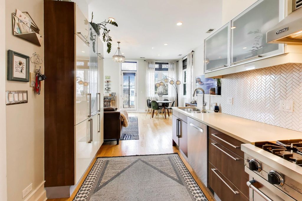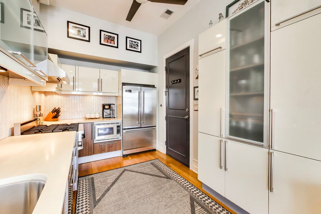This light filled duplex home is situated within an intimate, all-brick boutique building in the heart of Ravenswood. Flexible layout with all 3 bedrooms on the top floor, and the kitchen and living space on the lower floor. Truly lives like a home, not your standard condo. The primary suite serves as a true sanctuary, featuring a large walk-in closet and a spa inspired bathroom with heated floors, a deep soaking tub, and a separate glass-enclosed steam shower. The most unique feature is the suite's direct access to an attached, covered outdoor space, one of two outdoor spaces included with the home. The 3rd bedroom has been opened up and is being used as a den/home office currently. All you need is one wall and a door to convert back to a private bedroom, or opt for a set of french doors to keep the space feeling open. The kitchen is equipped with professional-grade Viking appliances, flowing effortlessly into an open living space with huge windows that provide a ton of natural light, soaring 10 foot ceiling height, a gas fireplace, and plenty of space for a dining table. Directly from the living room, head out to the garage rooftop deck, shared with just one other unit (split equally down the middle). New windows installed in 2022, plus custom Hunter Douglas shades. New washer/dryer in 2025. New dishwasher in 2023. Garage parking space included with the unit. Steps to boutiques, restaurants, coffee shops, the CTA Brown Line, and the Metra.