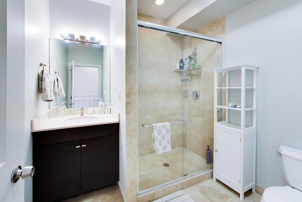 This extra-wide 2 bed, 2 bath residence offers approximately 1,400 square feet of thoughtfully designed living space in the heart of River West. A wall of south-facing windows floods the home with natural light, creating a bright and inviting atmosphere from the moment you enter. The open-concept layout features a modern kitchen with stainless steel appliances, a large island, and seamless flow into the expansive living area-perfect for both everyday living and entertaining. The living space easily accommodates a full seating arrangement around the fireplace, along with a dedicated dining area. The king-sized primary suite is a true retreat, complete with a walk-in closet and a spacious ensuite bath featuring a double vanity, separate shower, and a jacuzzi tub. The second bedroom is generously sized with excellent closet space, and the second bathroom is equally well-appointed.A standout feature of the home is the exceptional private outdoor space-a massive 200+ sq ft terrace spanning the full width of the unit, offering ample room for lounging, dining, and entertaining. Additional highlights include hardwood floors throughout, abundant storage, in-unit laundry, and an included exterior parking space. Tenant occupied through May 31.