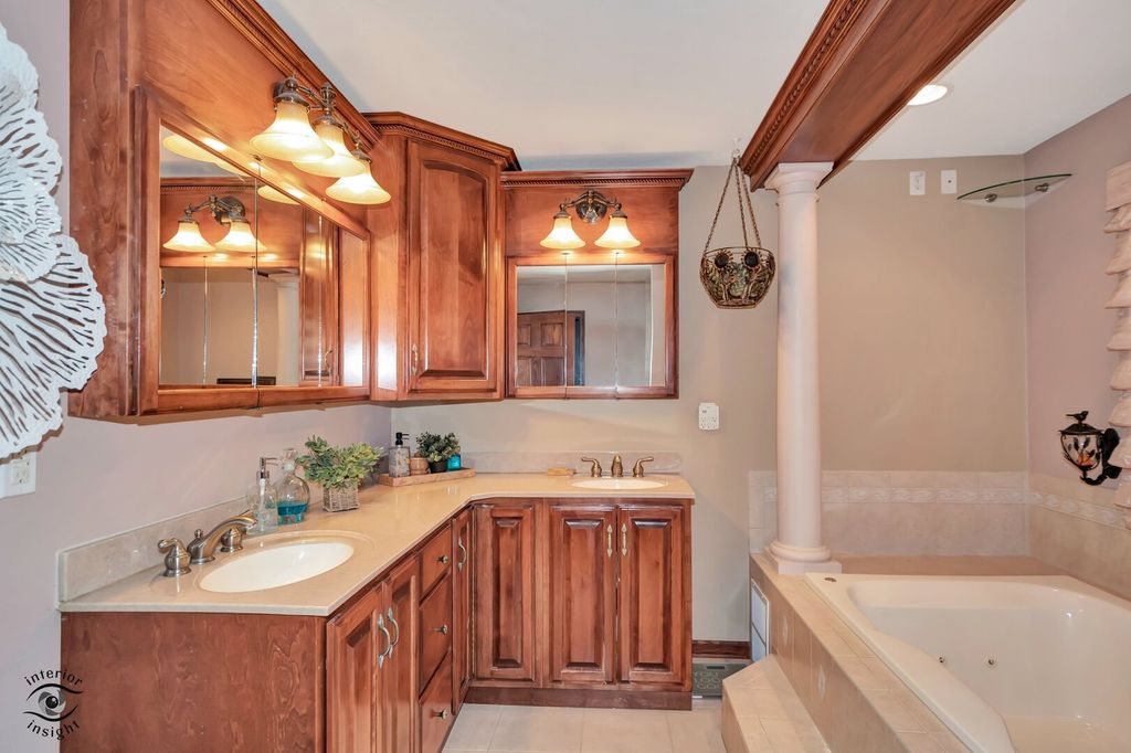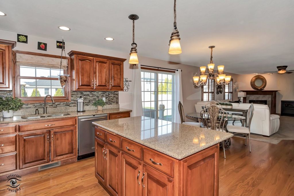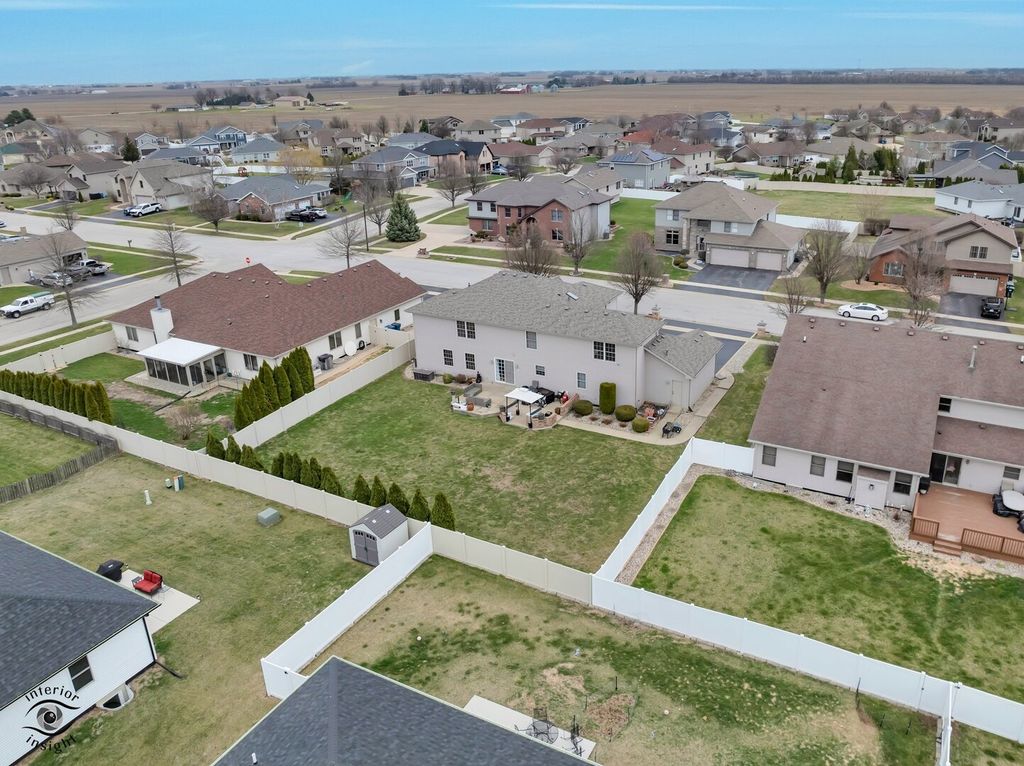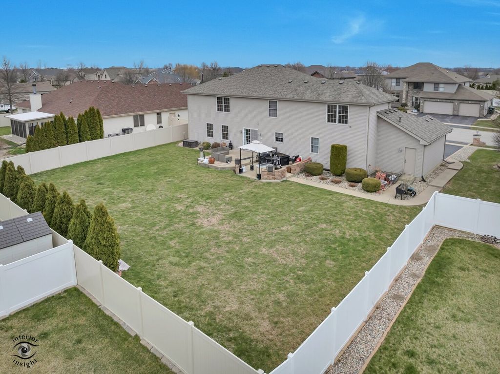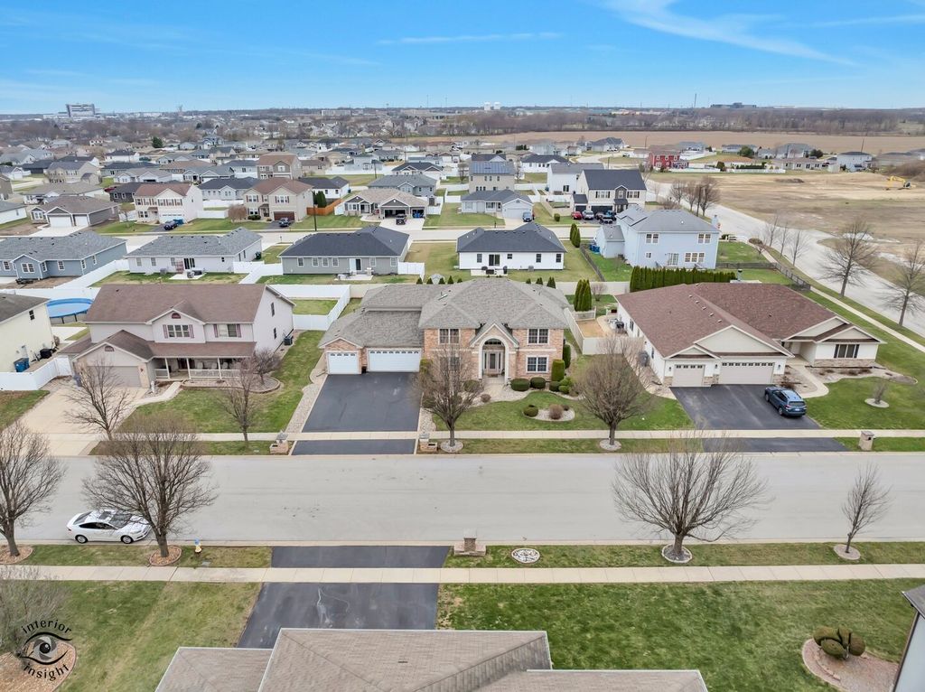 Absolutely stunning, impeccably maintained custom home with exceptional curb appeal, professional landscaping, and a spacious yard perfectly blending elegance, comfort, and functionality. Just 50 minutes from Chicago with easy access to the Interstate, the property offers approximately 3,000 sq ft, this 4-bedroom, 2.5-bath beauty showcases meticulous attention to detail and quality upgrades throughout. Step into a grand foyer that sets the tone for the home's impressive design, highlighted by a statement chandelier with an electric lift for easy cleaning. Just off the entry, a versatile additional living room on the main level offers the perfect space for a private office, sitting room, or flex space to suit your needs. The heart of the home features a bright and inviting open-concept kitchen and great room designed for both everyday living and effortless entertaining. The kitchen is a true showstopper with a generous island, granite countertops, custom cabinetry, tile finishes, and a large walk-in pantry, all opening to a warm and welcoming great room with a corner fireplace. A formal dining room provides the perfect setting for hosting memorable gatherings. The luxurious primary suite is the crown jewel of the home, offering a spacious layout with a tray ceiling and a private sitting area ideal for reading, relaxing, or unwinding. The spa-inspired ensuite bath features a large tiled walk-in shower, whirlpool tub, and serene, tranquil finishes. Additional highlights include a 3-car heated garage with thermostat, main level laundry, skylights, custom window treatments (which will remain), and a thoughtfully designed space for potential future elevator installation. The home is equipped with a high-efficiency dual furnace and A/C system, along with a built-in humidifier for added comfort. Major updates include a new roof (2025) and water heater (2020). The full basement is already roughed in with electrical and plumbing for a future full bath, theater room, and wet bar offering incredible potential with just drywall and flooring needed to complete. Step outside to a large patio overlooking the beautifully landscaped yard perfect for outdoor entertaining or peaceful relaxation. If you're considering building, this home is an absolute must-see. Every detail has been carefully curated. You will be impressed at every turn!