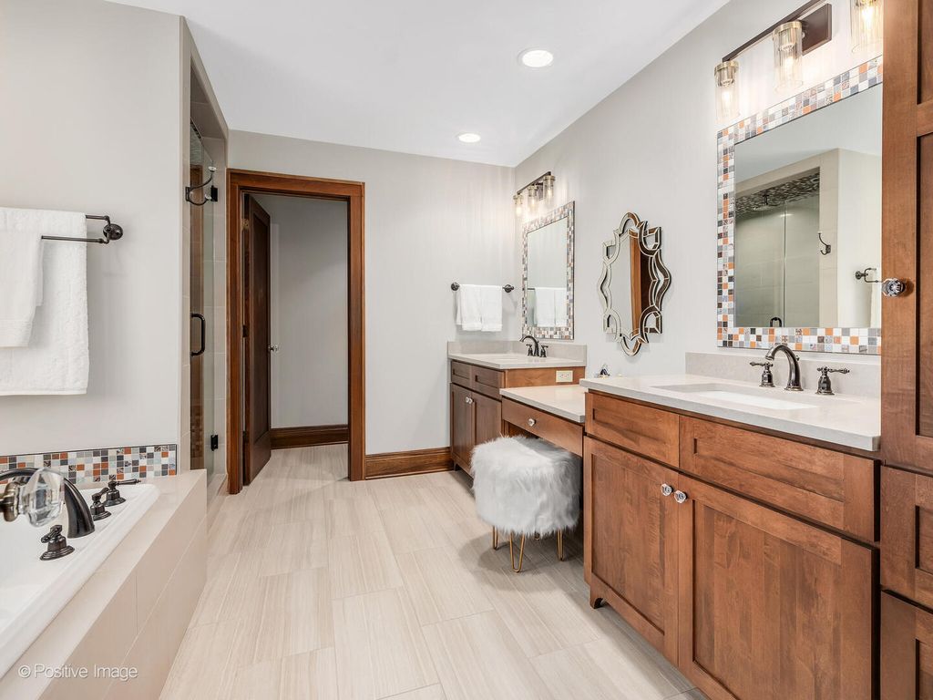 Welcome home! Stunning expanded bungalow in the sought-after Lincoln Elementary / Bryan Middle School District, thoughtfully blends classic charm with modern updates and a functional open floor plan. Situated on an impressive 64x140 lot, this spacious residence offers 6 bedrooms and 4 full bathrooms, including a main level office or 5th bedroom. The 4,063sf of sun-filled living spaces showcase warm wood details, hardwood floors, large windows, and a stone fireplace anchoring the family room. The updated kitchen is designed for both everyday living and entertaining, featuring gorgeous custom alder cabinetry, new quartz countertops, double ovens plus Wolf, Bosch and GE stainless steel appliances, pot filler, and expansive windows. A wet bar complete with a wine fridge and a beverage fridge, leathered granite countertops adds to the home's thoughtful design. Formal living and dining rooms provide additional space for gathering. Upstairs, four generously sized bedrooms include a massive primary suite with a large walk-in closet and a beautifully updated ensuite bath complete with double sinks, quartz countertops, jacuzzi tub, separate custom tiled shower, private water closet, and dedicated makeup area. Huge bedrooms with oversized walk-in closets, and a second-floor laundry room adds everyday convenience. The finished basement includes a rec room, 6th bedroom, and the gorgeous newly renovated full bath is ideal for guests. The backyard is perfect, and the custom brick paver patio creates a perfect setting for outdoor entertaining. Long list of additional highlights includes dual zone heating and cooling, sprinkler system, generator, abundant natural light, and a prime location within highly desirable Elmhurst 205 school district.