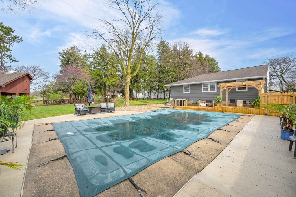 Experience country living on a beautifully landscaped 1-acre home in Normal, where the charm of country serenity meets the convenience of in-town living. Framed by 17 rosebud trees and lush hosta gardens, this property offers a private, park-like setting designed for both relaxation and entertaining. Thoughtfully updated throughout, the home showcases a kitchen with granite countertops, updated sink, faucet, and window, complemented by newer appliances and stylish flooring that flows seamlessly through the main living spaces. Lovely sunroom with amazing views and natural sunlight flowing throughout. Warm, inviting living areas feature a gas fireplace on the main level and an additional electric fireplace in the walkout lower level, creating cozy feeling all year around. Step outside to your own resort-style retreat. The walkout lower level opens to a stunning 20x40 heated pool, complete with updated liner, LED lighting, and new 2025 mechanicals including filter, pump, and advanced heating system. Surrounded by newly poured concrete, this outdoor oasis is ideal for elevated entertaining or quiet summer evenings. Additional enhancements include a newly insulated home and garage, a recently replaced driveway with expanded parking, a newer water heater, and a beautifully constructed deck with pergola engineered to support a hot tub. A 22x20 outbuilding and a secluded firepit area further elevate the lifestyle this property offers. This is more than a home-it's a private retreat designed for comfort, style, and exceptional outdoor living. New Driveway and extra parking pad 2025 New insulation throughout house and garage 4 years ago New Flooring in family room, dining room, kitchen, sunroom 3 years ago All new carpet 3 years old New Sunroom window and slider 3 years ago New kitchen sink, faucet, granite countertops 2 years ago Appliances 4 years old Kitchen window 3 year old New can lighting and fans 2nd bathroom window 3 years old New water heater in 2025 20x40 pool 4ft-8ft New pool concrete was done in 2025 Pool liner and LED lights 3 years old New lines skimmer deep end of the pool 2025 New filter/pump 2025 Chlorinator/ heater in 2025 Side deck 3 years old all new rock 1/2 bath added in lower level Gutterguards added Roof approx 15 years old Gas fireplace approx 3 years old
